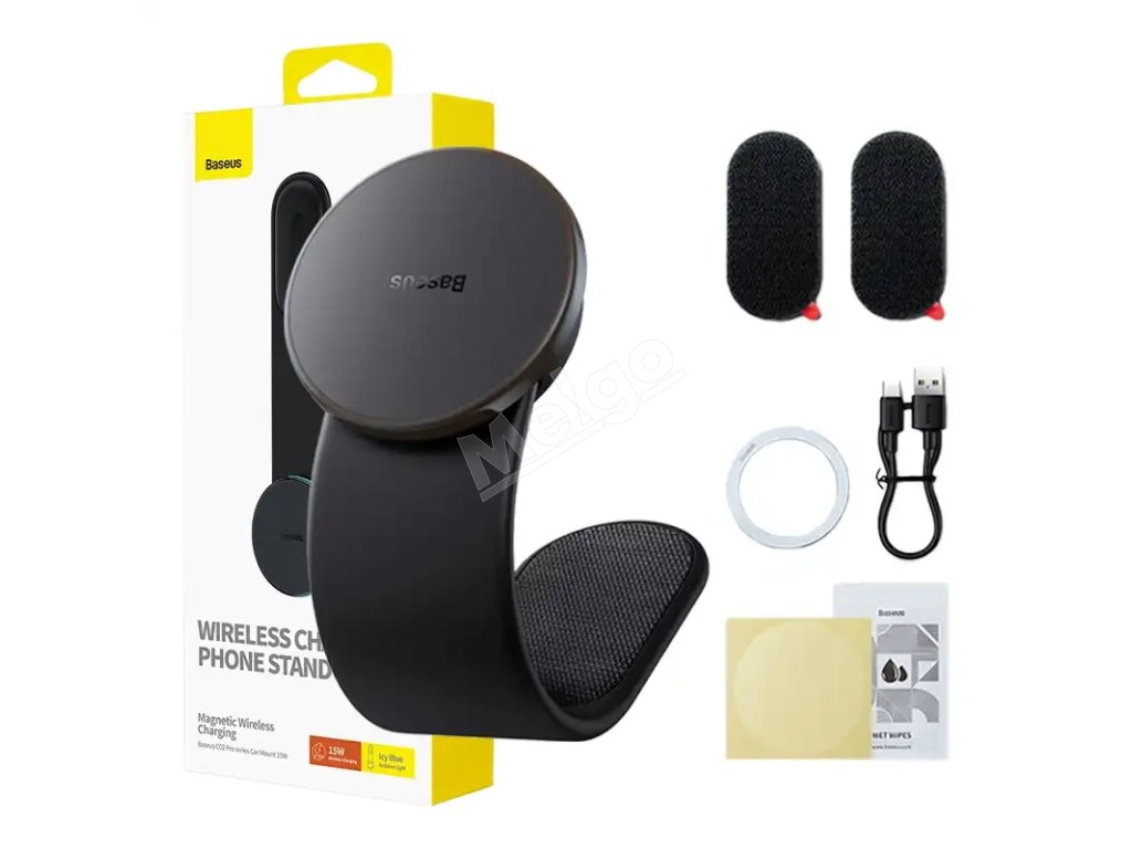 Baseus C02 Pro Series, vybavený 15W magnetickým nabíjacím systémom, dokáže udržať zariadenia s hmotnosťou až 1,8 kg, takže je ideálny pre väčšinu smartfónov dostupných na trhu. Konštrukcia držiaka je špeciálne prispôsobená pre telefóny iPhone, ale je kompatibilný aj s telefónmi iných značiek. Jemné modré osvetlenie dodáva držiaku eleganciu a uľahčuje jeho lokalizáciu v noci. Páska 3M poskytuje dodatočnú stabilitu aj pri extrémnych teplotách a pružný a odolný materiál umožňuje nastaviteľné uhly pohľadu. Držiak tiež umožňuje orientáciu na výšku aj na šírku, čím zvyšuje pohodlie používateľa.