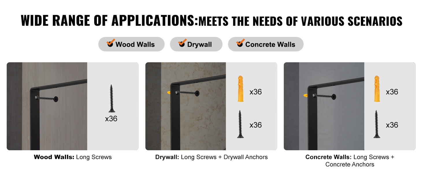 K dispozícii sú rôzne skrutky a skrutky na prispôsobenie držiaka rôznym povrchom stien, čím sa zabezpečí stabilná nosnosť aj na rôznych stenách.