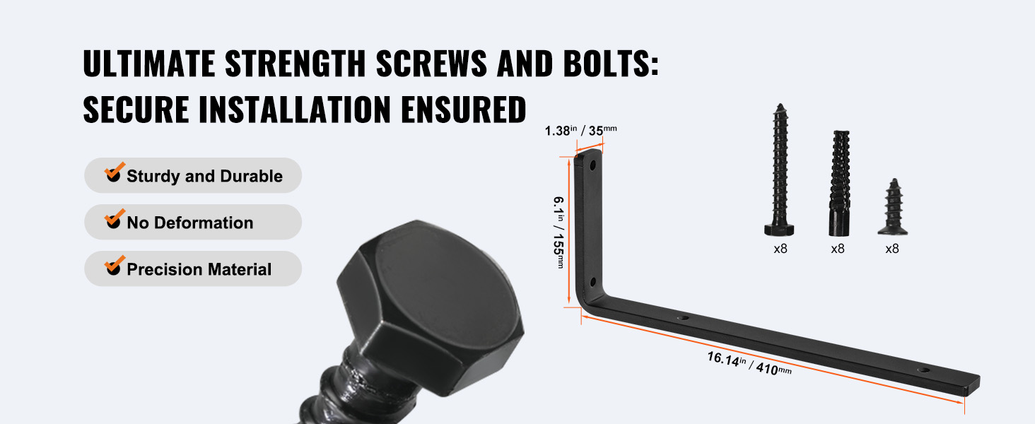 Držiaky na police tvar l, 4 ks, 16×6 in, 10 mm oceľ, nosnosť 160 lbs