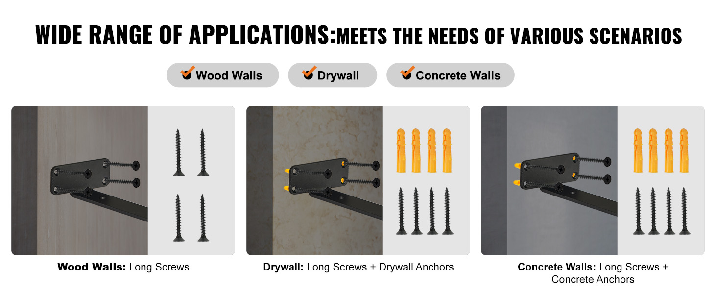 K dispozícii sú rôzne skrutky a skrutky na prispôsobenie držiaka rôznym povrchom stien, čím sa zabezpečí stabilná nosnosť aj na rôznych stenách.