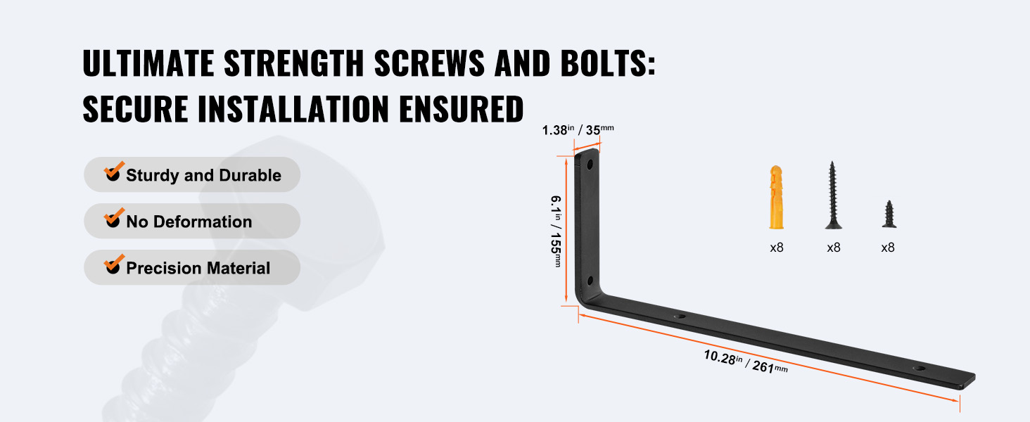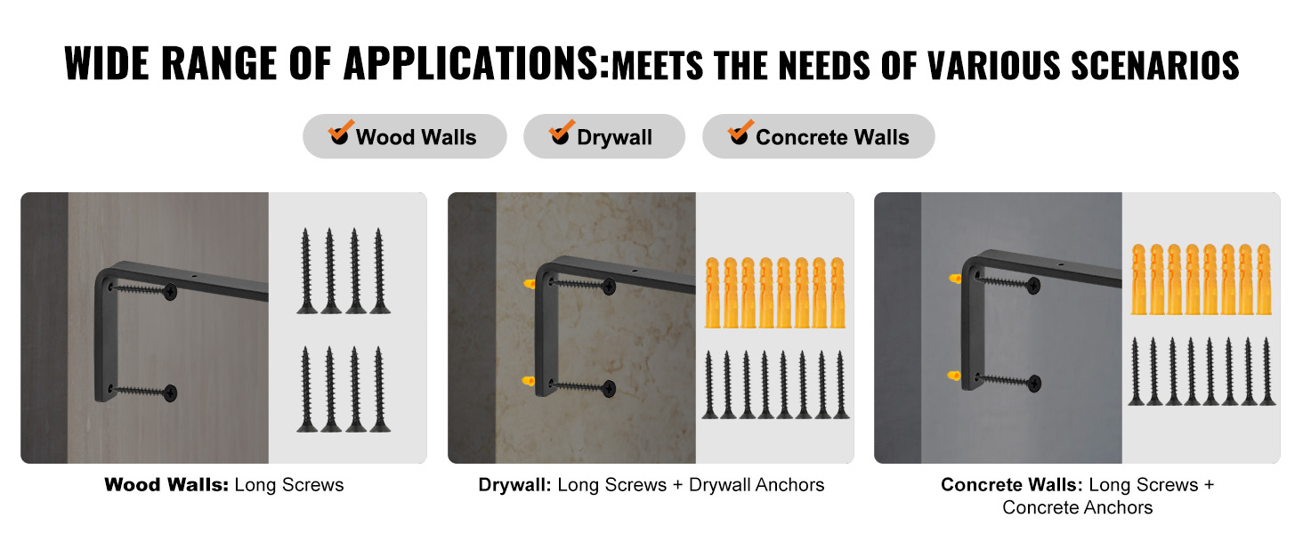 K dispozícii sú rôzne skrutky a skrutky na prispôsobenie držiaka rôznym povrchom stien, čím sa zabezpečí stabilná nosnosť aj na rôznych stenách.