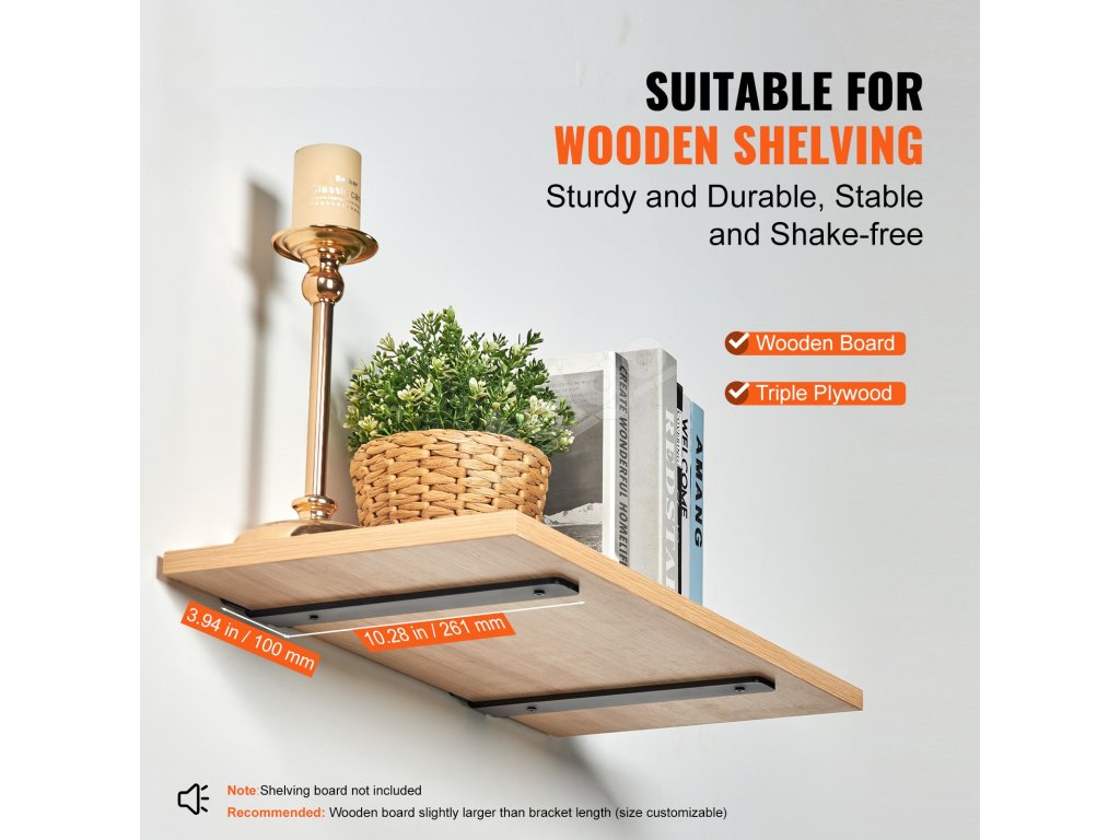Držiak na plávajúcu policu l 10"×4"×1.6" 5mm oceľ 6ks nosnosť 160 lbs