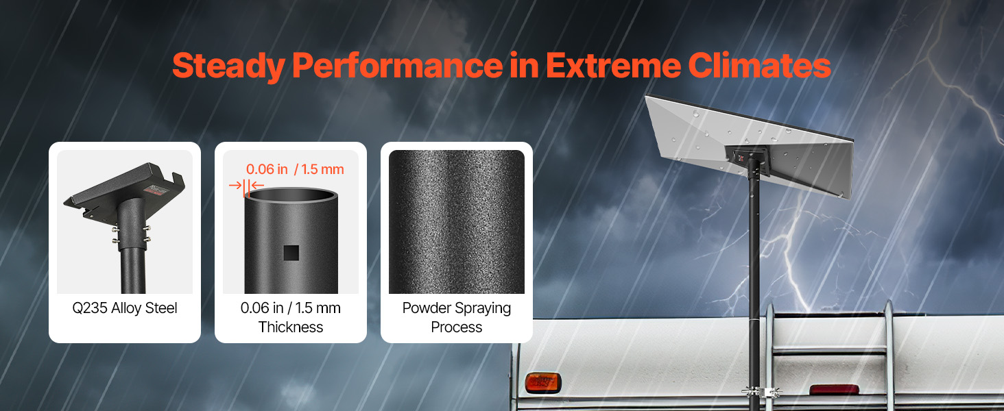 Je vyrobený z vysokopevnostnej ocele so zosilnenou konštrukciou odolnou voči poveternostným vplyvom, čo zaručuje dlhodobý výkon v náročných vonkajších podmienkach.