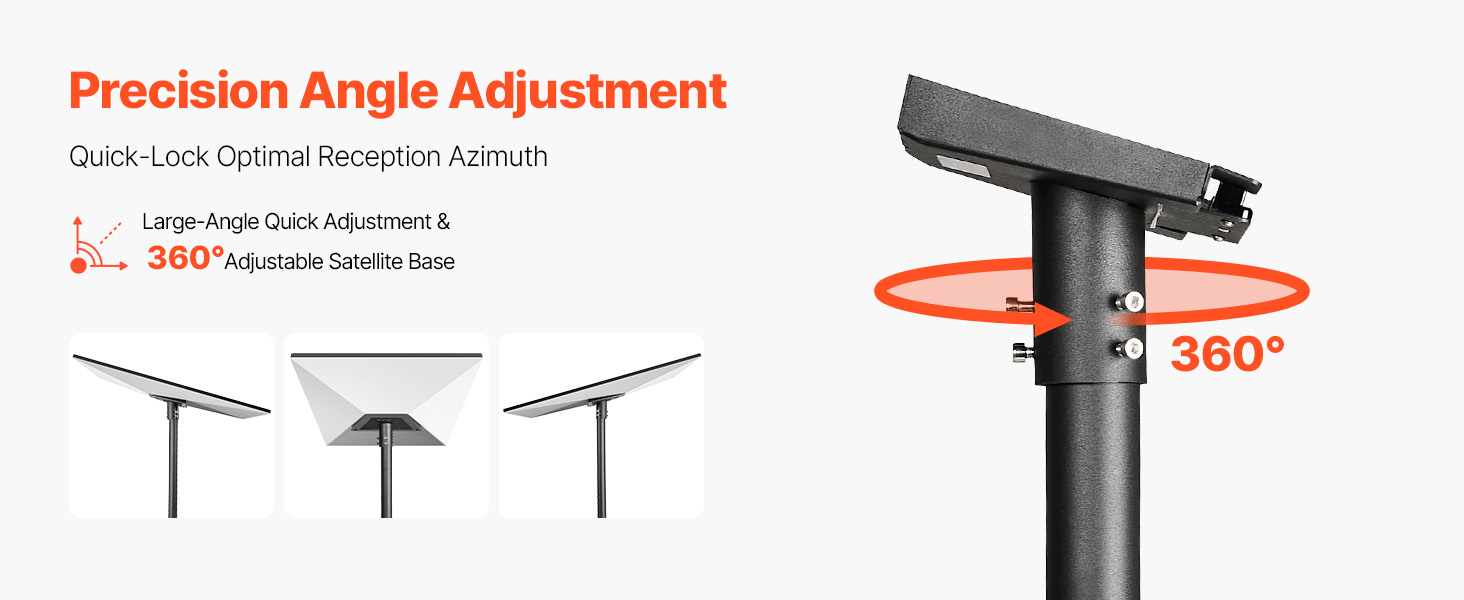 Držiak na stĺp Starlink poskytuje široký rozsah nastavenia azimutu a viacsmerové otáčanie, čo umožňuje presné nastavenie pre optimálny signál a plynulé, neprerušované satelitné služby.