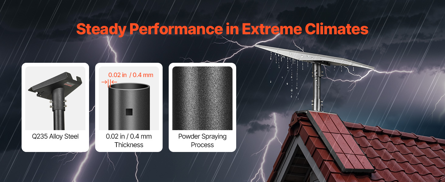 Je vyrobený z vysokopevnostnej ocele so zosilnenou konštrukciou odolnou voči poveternostným vplyvom, čo zaručuje dlhodobý výkon v náročných vonkajších podmienkach.