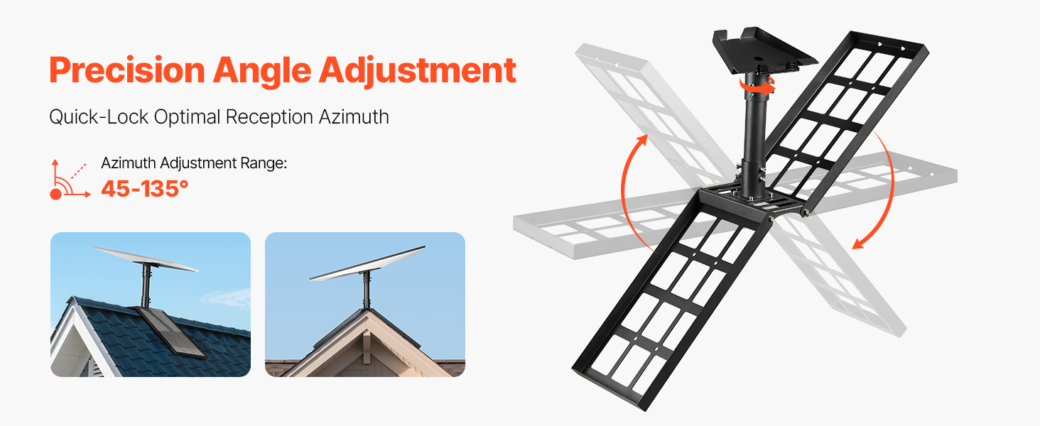 Držiak na stĺp Starlink poskytuje široký rozsah nastavenia azimutu a viacsmerové otáčanie, čo umožňuje presné nastavenie pre optimálny signál a plynulé, neprerušované satelitné služby.