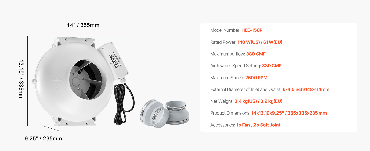 S prietokom vzduchu 380 CFM tento radónový ventilátor rýchlo znižuje hladinu plynu radónu v interiéri, čím zabezpečuje zdravé prostredie na dýchanie pre vašu rodinu.