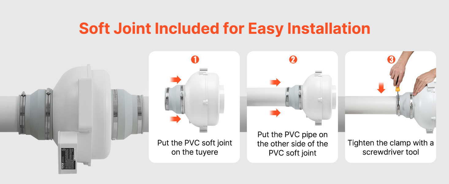 Je vybavený dvoma spojkami, vďaka ktorým sa ľahko pripája k PVC rúram bez potreby profesionálneho náradia, takže jeho inštalácia je hračka.