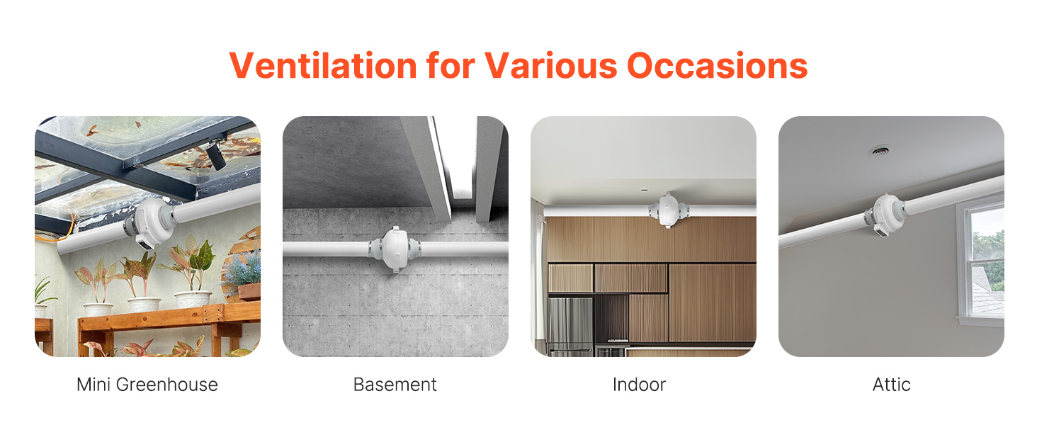 Vhodný na rôzne nastavenia vrátane pivníc, podkroví a vnútorných alebo vonkajších priestorov, čím splní vaše rozmanité potreby v oblasti vetrania.