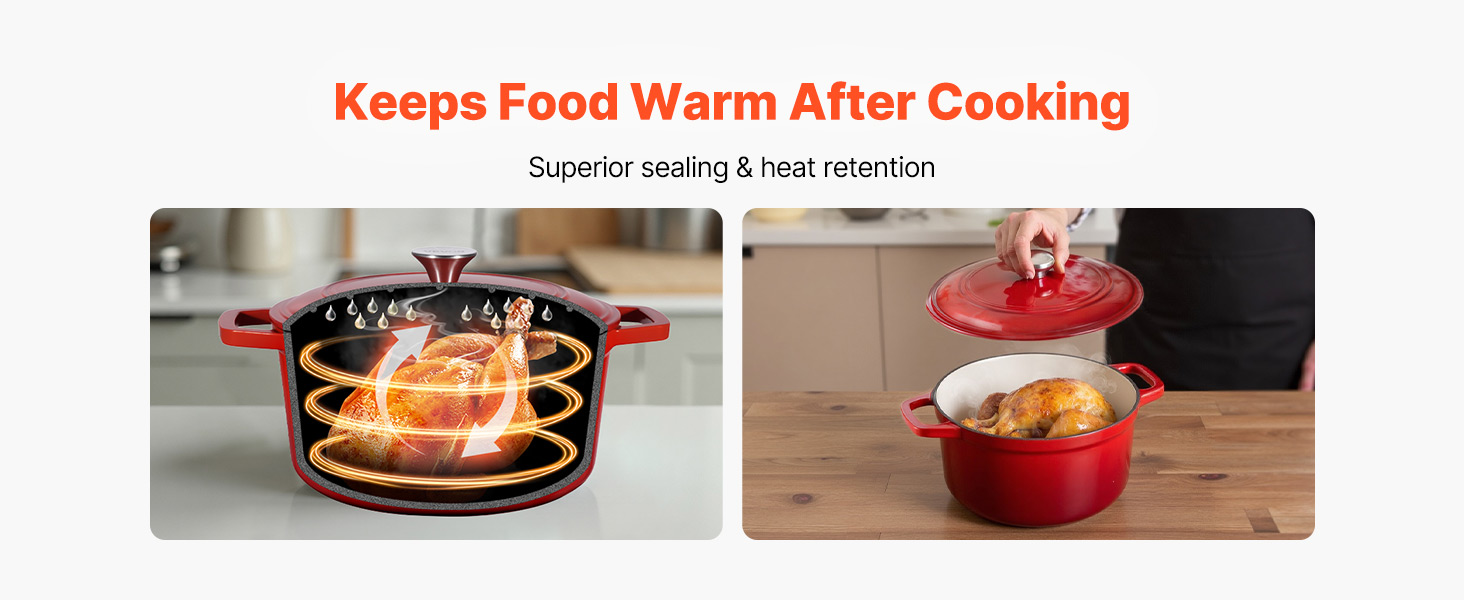 Tento odolný hrniec vyrobený z vysokokvalitnej liatiny a spojený s hrubým, tesne priliehajúcim vekom má vynikajúcu schopnosť udržiavať teplo. Aj po vypnutí ohrevu si naďalej udržiava teplo, čím udržiava ideálnu teplotu a štruktúru jedla pri servírovaní na stôl.