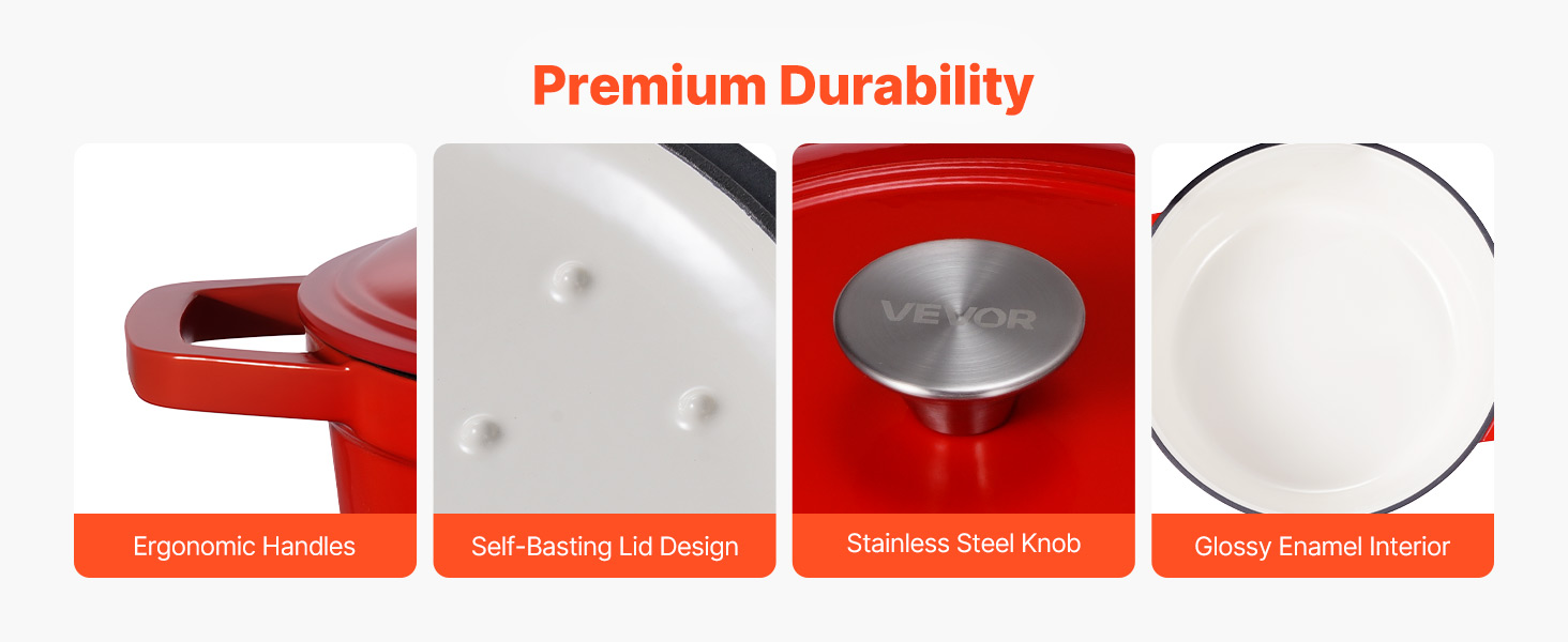 Každý detail tohto hrnca na pečenie je navrhnutý podľa vysokých štandardov, od pokrievky a rukovätí až po vnútorný povrch a príslušenstvo. Zaručuje dlhodobú odolnosť a spoľahlivosť a zároveň poskytuje pohodlnejšie a premyslenejšie používanie.