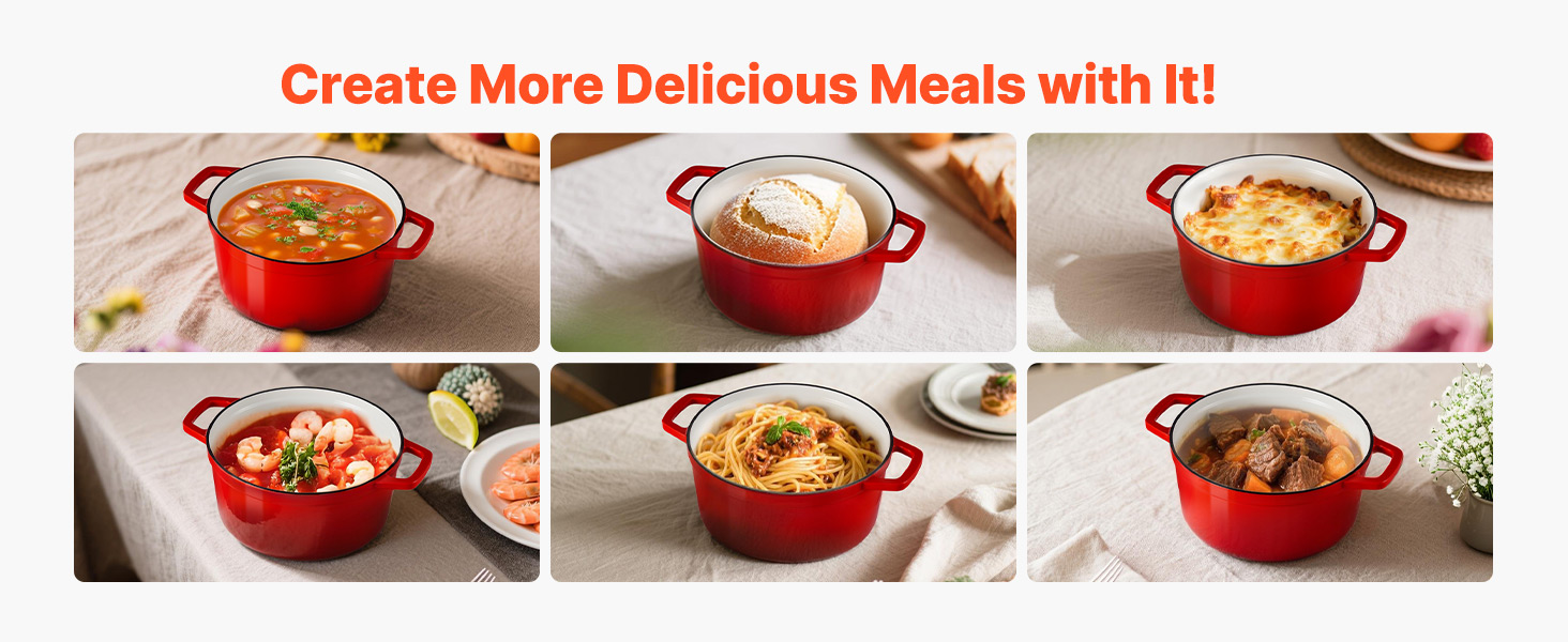 Veľkokapacitná konštrukcia hlbokého hrnca spĺňa všetky vaše potreby na dusenie, vyprážanie, smaženie a pečenie. Jeden smaltovaný hrniec vám pomôže pripraviť rôzne chutné jedlá!