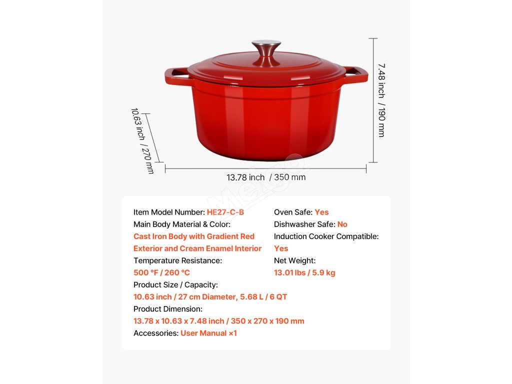 Liaty hrniec s emajlom 5.7L s pokrievkou, indukcia a rúra do 260 ℃