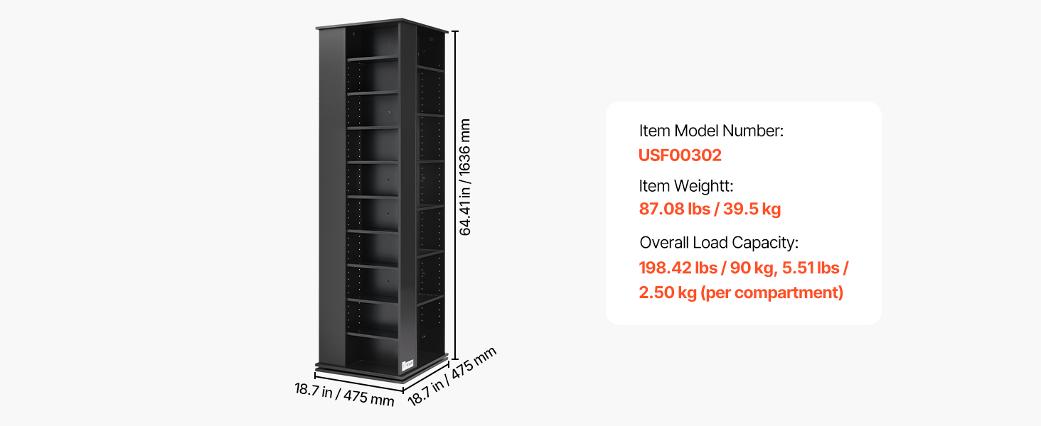 | Rozmery výrobku | 18,70 x 18,70 x 64,41 palca / 475 x 475 x 1636 mm |