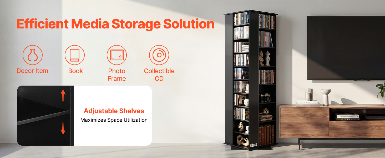 Plynulá otočná konštrukcia umožňuje skrini na CD ľahko sa otáčať, takže môžete rýchlo nájsť a vybrať si médiá bez opakovaného hľadania, čo robí každodenné používanie rýchlejším a pohodlnejším.