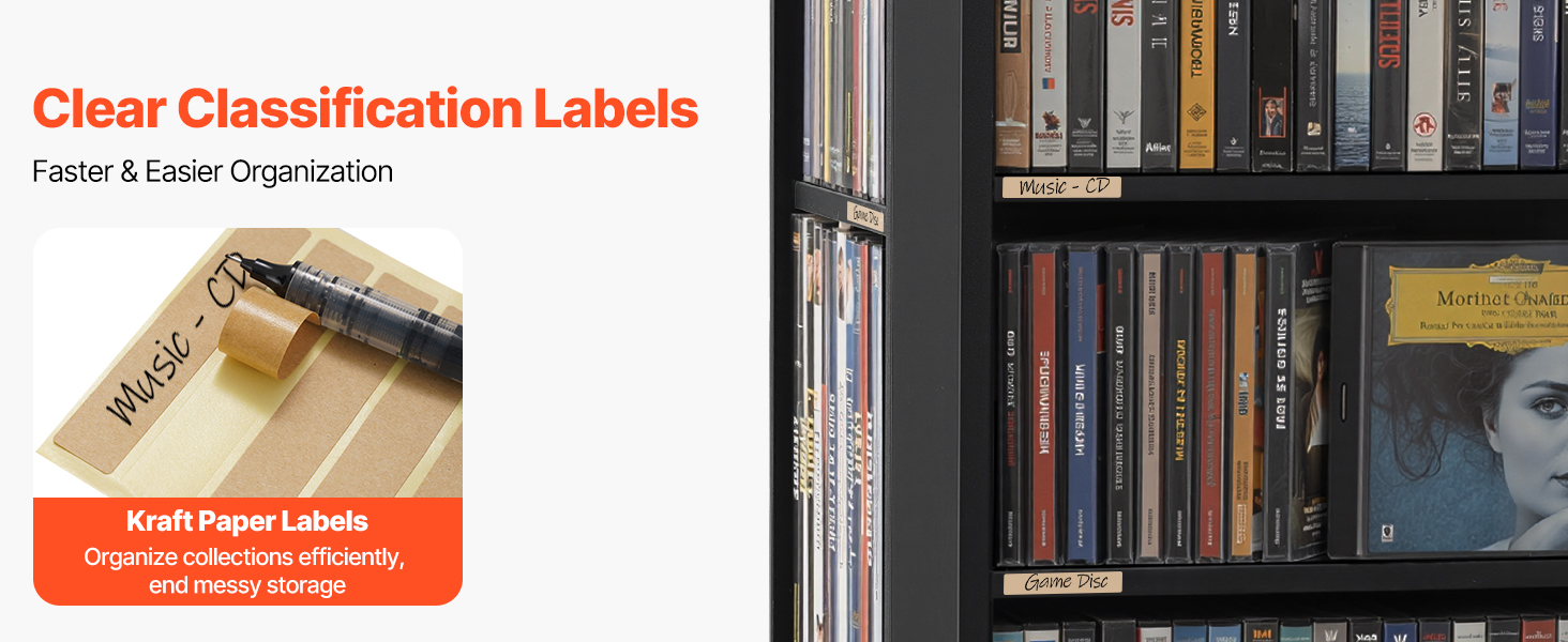 Označte každý priestor v našej polici na filmy pomocou značiek z kraftového papiera, aby ste mohli rýchlo triediť a identifikovať svoje DVD. Prestante strácať čas prehľadávaním neporiadnej zbierky.