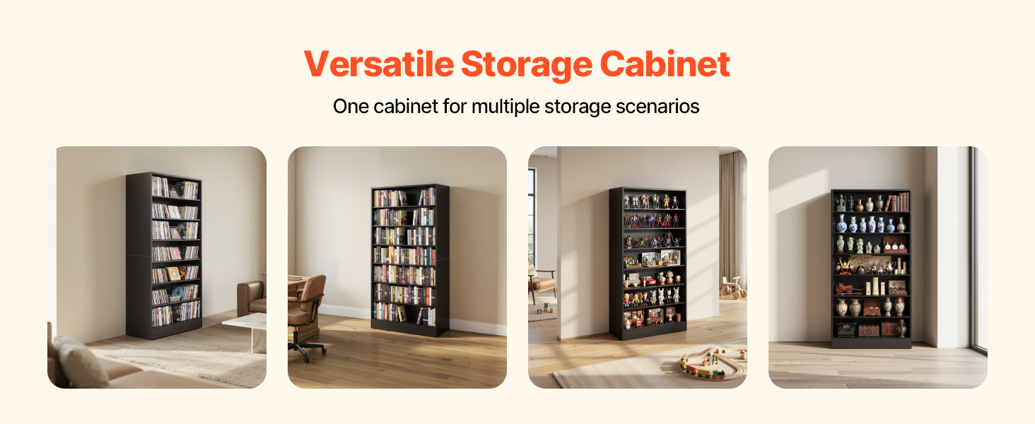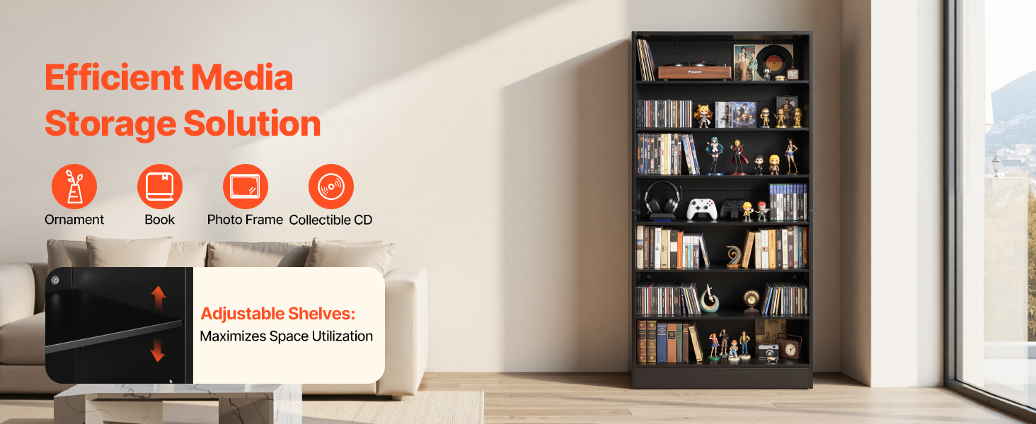 Naša skriňa na médiá je vybavená inovatívnymi nastaviteľnými policami, ktoré vám umožňujú prispôsobiť výšku vnútorného priestoru podľa potreby, čím maximalizujete efektivitu úložného priestoru a zároveň bezpečne udržíte svoje cenné zbierky usporiadané a vystavené.