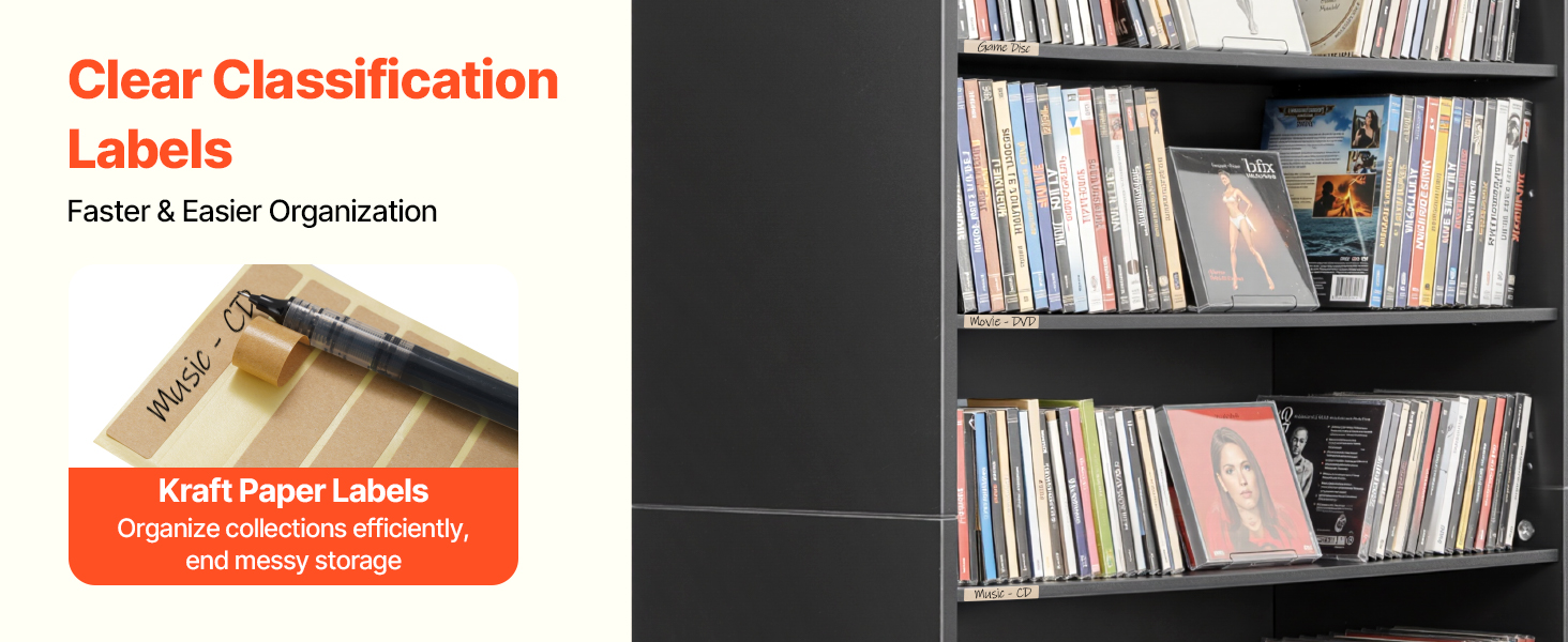 Označte každý priečinok v našej polici na filmy pomocou značiek z kraftového papiera, aby ste mohli rýchlo triediť a identifikovať svoje DVD. Prestante strácať čas prehľadávaním neporiadnej zbierky.