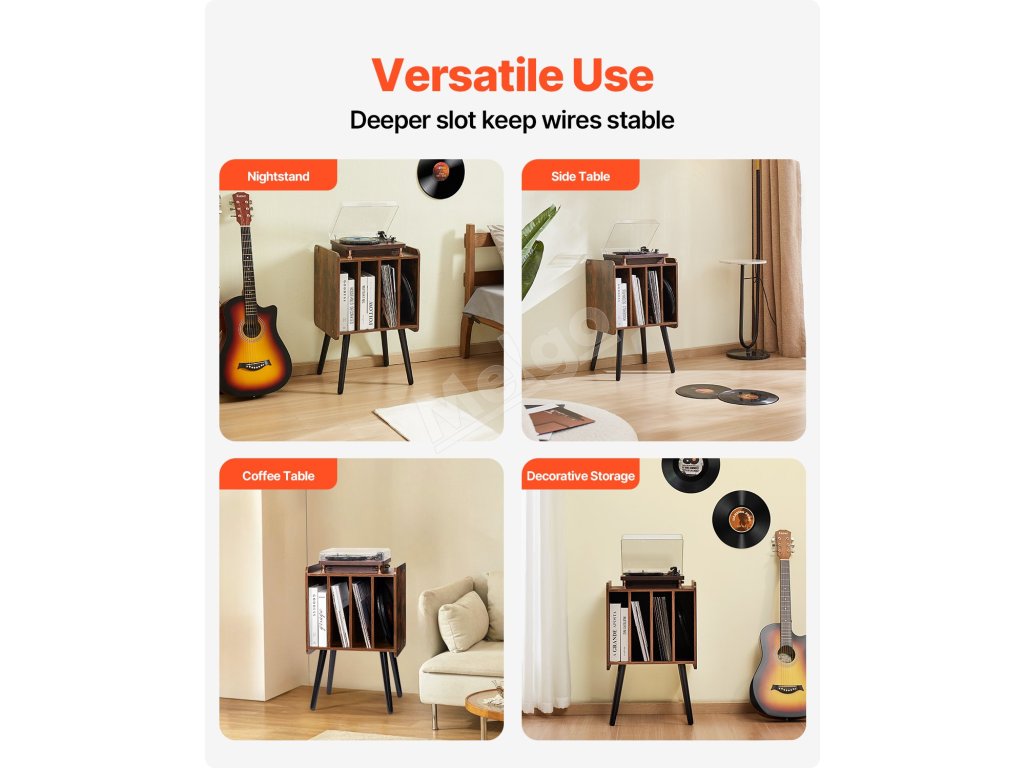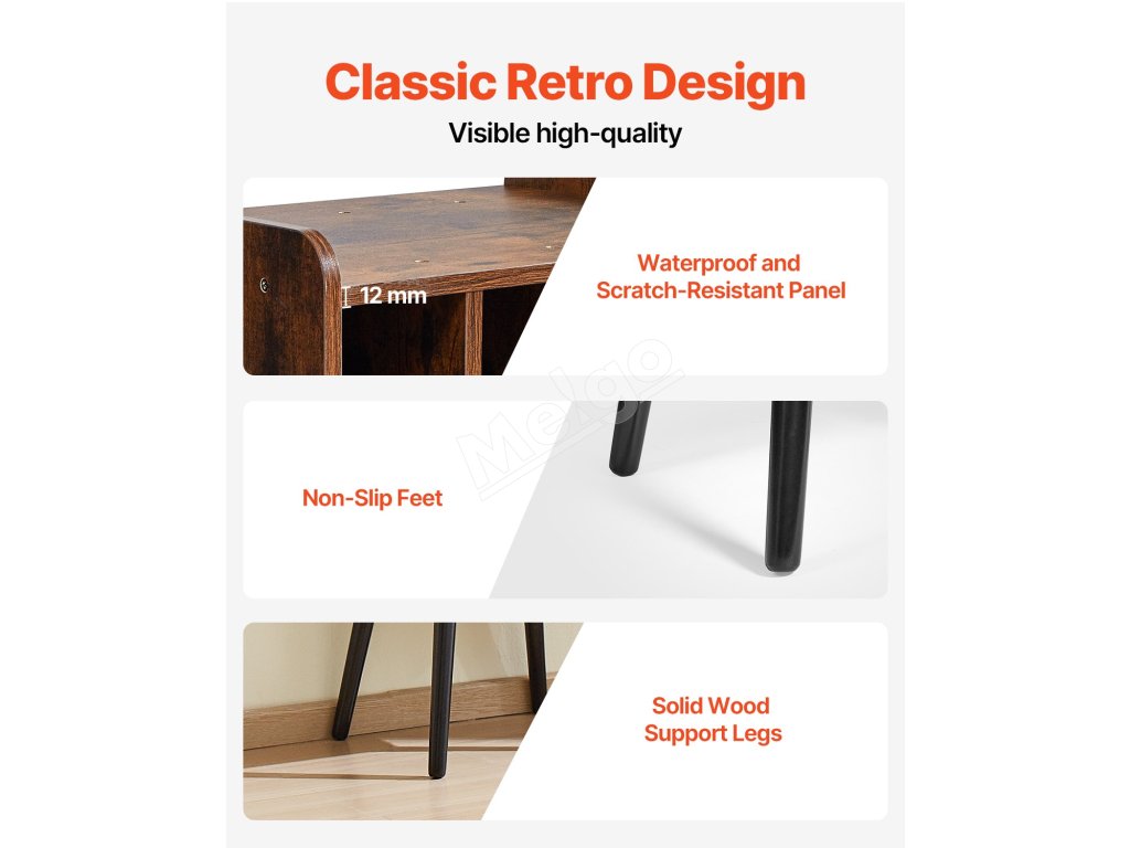 Tento stojan na gramofónové platne, vyrobený z prvotriednych vodoodolných panelov odolných proti poškriabaniu, je navrhnutý tak, aby zostal pevný a stabilný, čo zaručuje, že váš nábytok zostane vo forme a pripravený na roky používania.