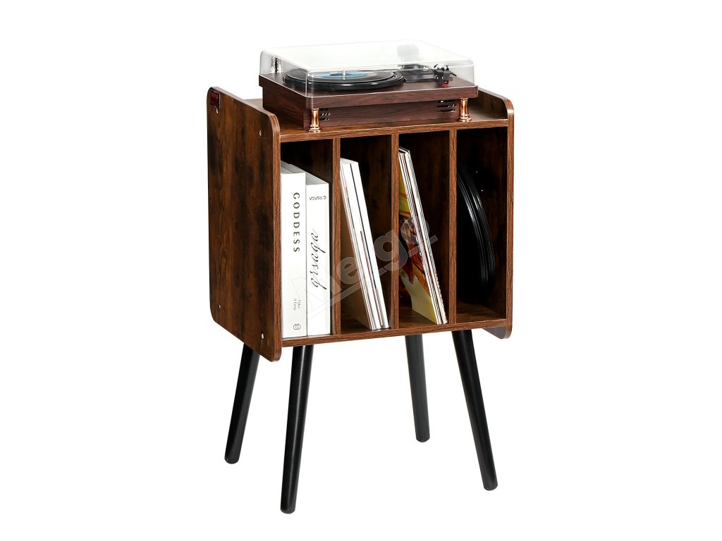 Stojan na gramofón, drevený, 2 police, 4 skrinky, na 100 platní