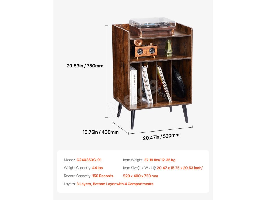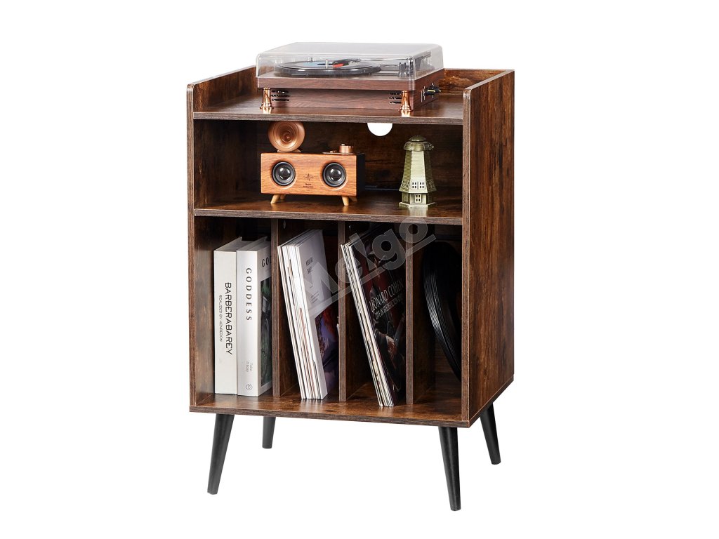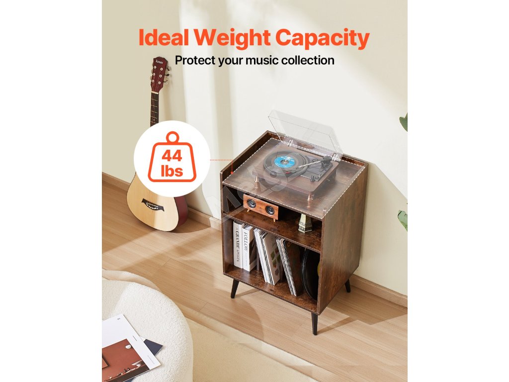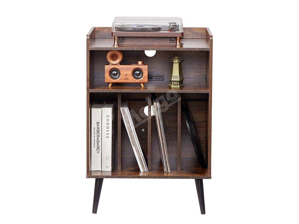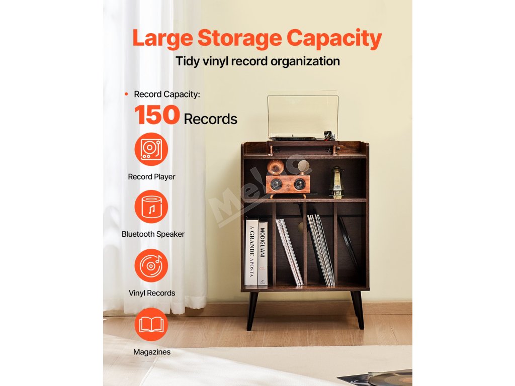 Tento stojan na gramofón s priestrannou doskou a otvoreným úložným priestorom vám poskytne dostatok miesta na usporiadanie vašej zbierky vinylov, do ktorej sa ľahko zmestí až 150 albumov. Je to skvelý stojan na vinylové prehrávače, ktorý vytvorí štýlové miesto, na ktorom budú vaše albumy a gramofón vystavené.
