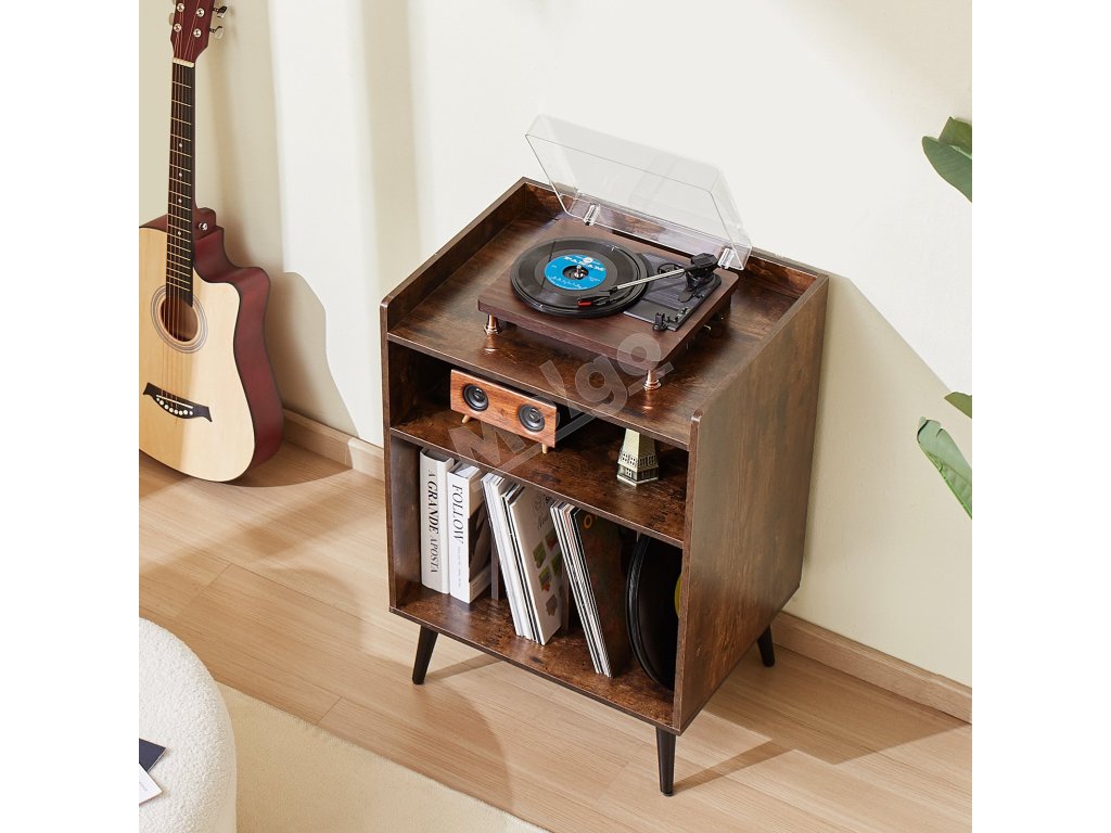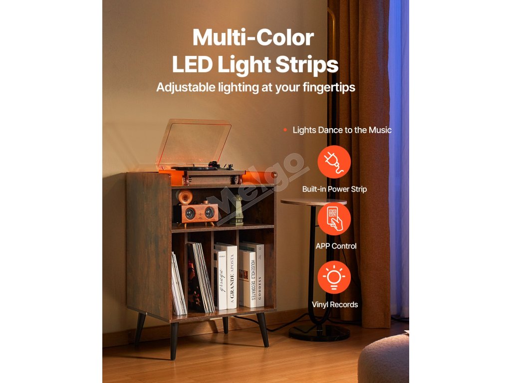 Stojan na gramofón s led svetlom, 3 police, usb a úložisko 150 platní