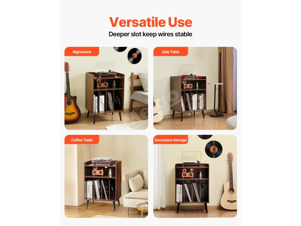 Tento stojan na gramofónové platne, vyrobený z prvotriednych vodotesných a proti poškriabaniu odolných panelov, je navrhnutý tak, aby zostal pevný a stabilný, čo zaručuje, že váš nábytok zostane vo forme a pripravený na roky používania.