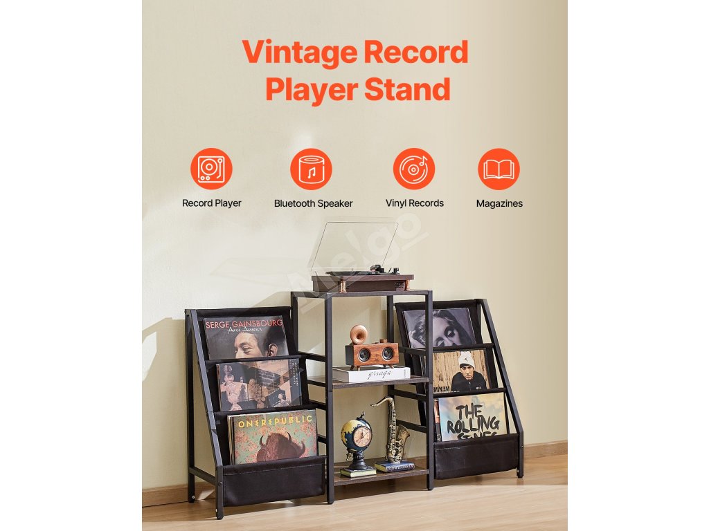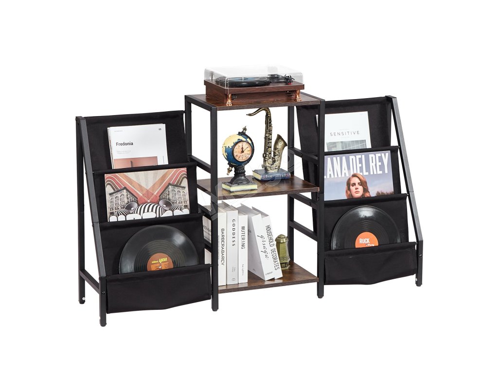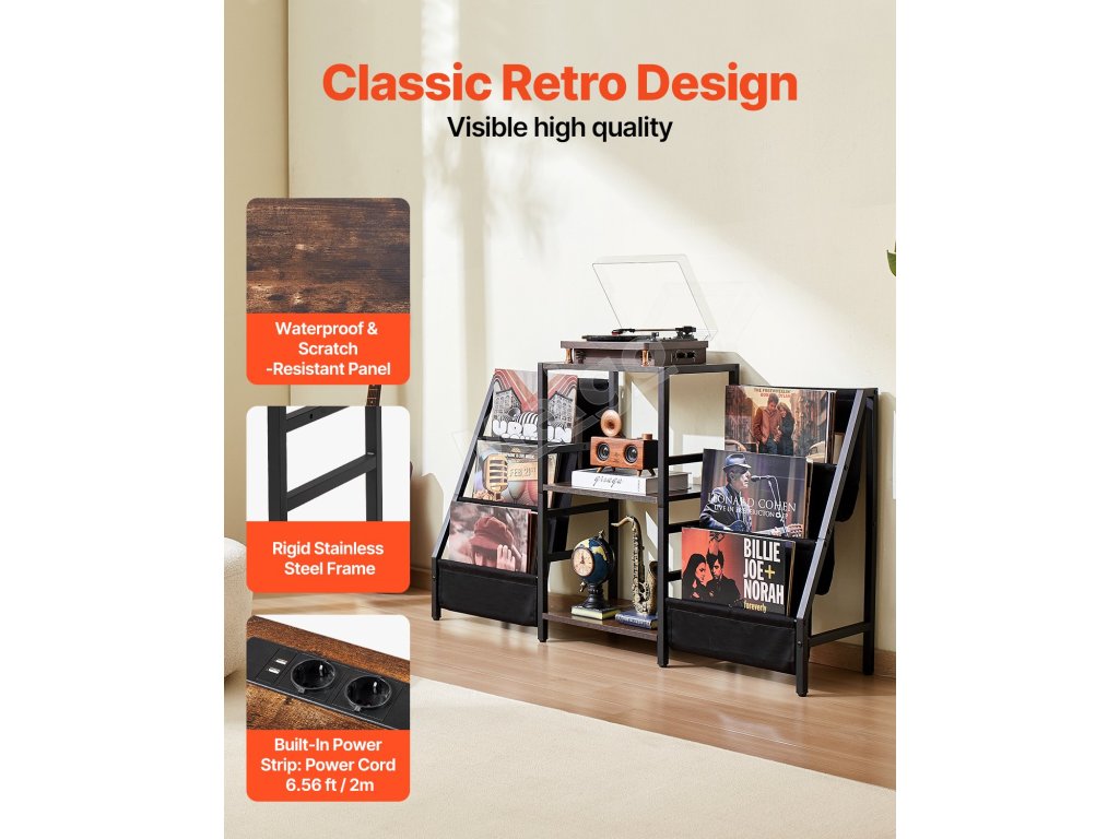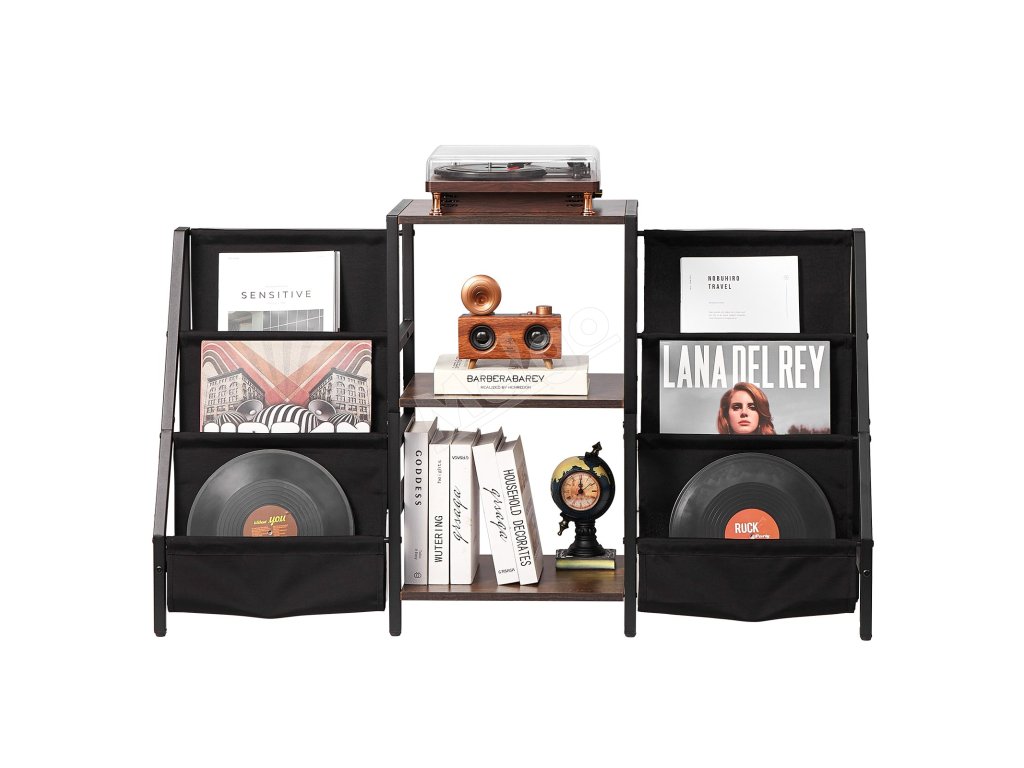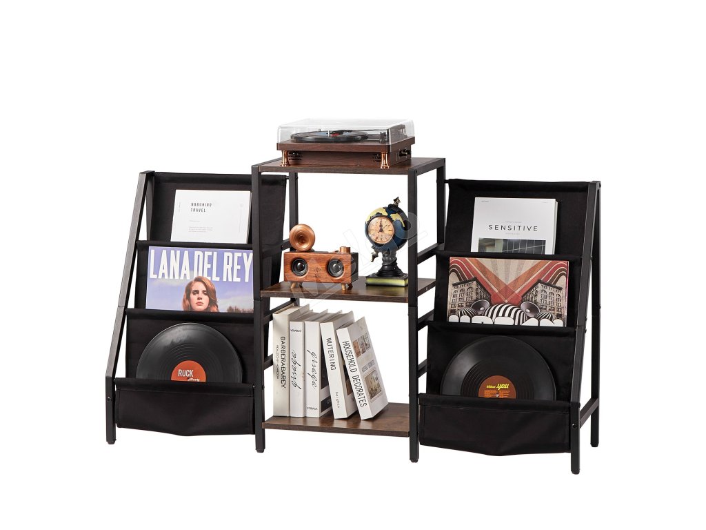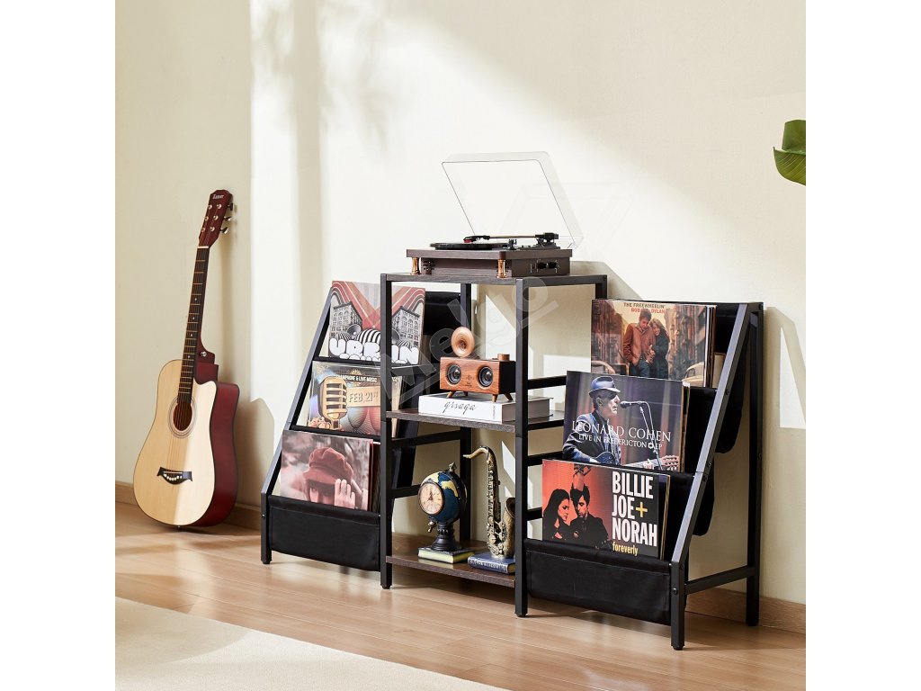 Vintage hnedé priečky nielenže dodávajú štýlový vzhľad, ale unesú až 100 kg, čím poskytujú pevnú a spoľahlivú oporu pre váš gramofón.