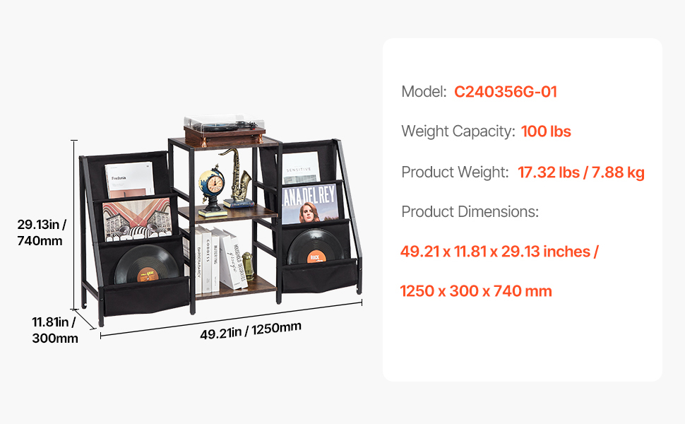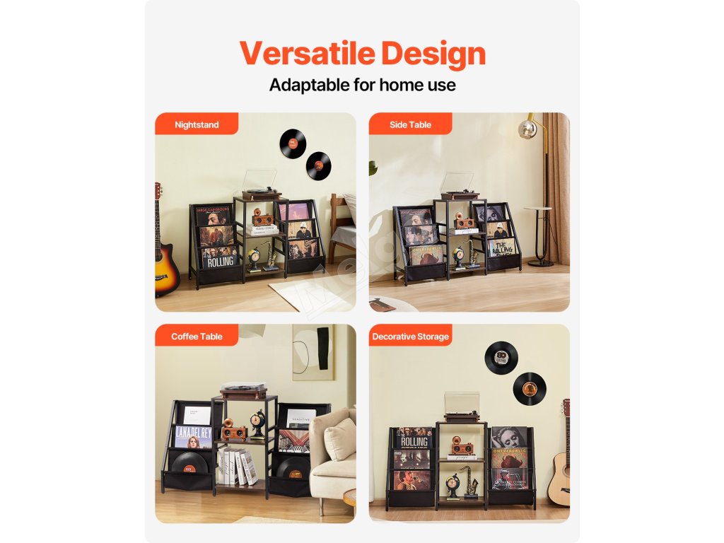 Tento stojan na gramofónové platne, vyrobený z prvotriednych vodotesných panelov odolných proti poškriabaniu, je navrhnutý tak, aby zostal pevný a stabilný, čo zaručuje, že váš nábytok zostane vo forme a pripravený na roky používania.