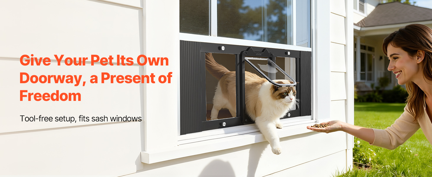 Pred zakúpením týchto dvierok pre domáce zvieratá na okno si overte správnu veľkosť, aby vaša mačka mohla zakaždým pohodlne prejsť.