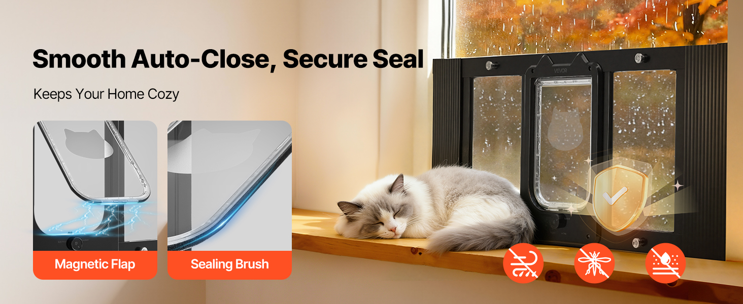 Magnetická klapka a mäkká kefová výstelka umožňujú tichý, bezproblémový pohyb. Naše okenné dvierka pre domáce zvieratá udržujú váš domov v pohodlí a čistote.