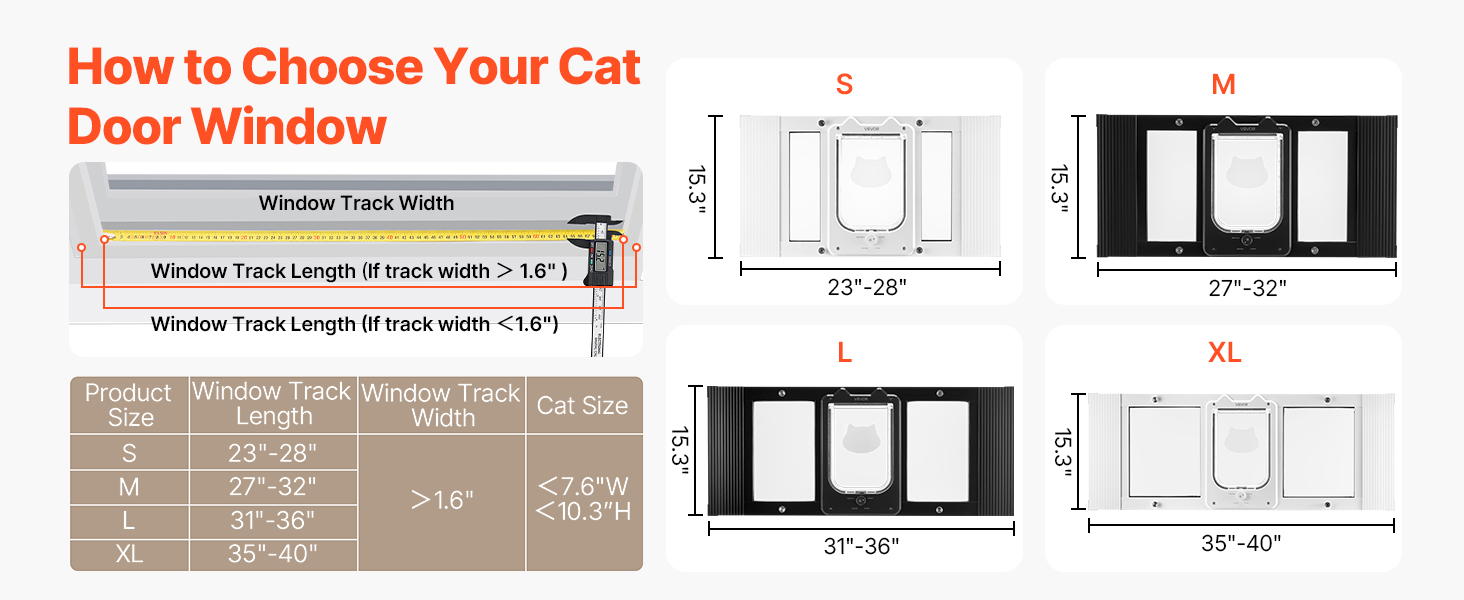 Pred nákupom si ich zmerajte. Ak je vaša okenná dráha širšia ako 1,6-palcová hrúbka dvierok pre mačky, zmerajte dĺžku vnútornej dráhy; ak je užšia, zmerajte vonkajšiu dráhu. Dvakrát skontrolujte svoje miery, aby ste sa uistili, že spadajú do nastaviteľného rozsahu.
