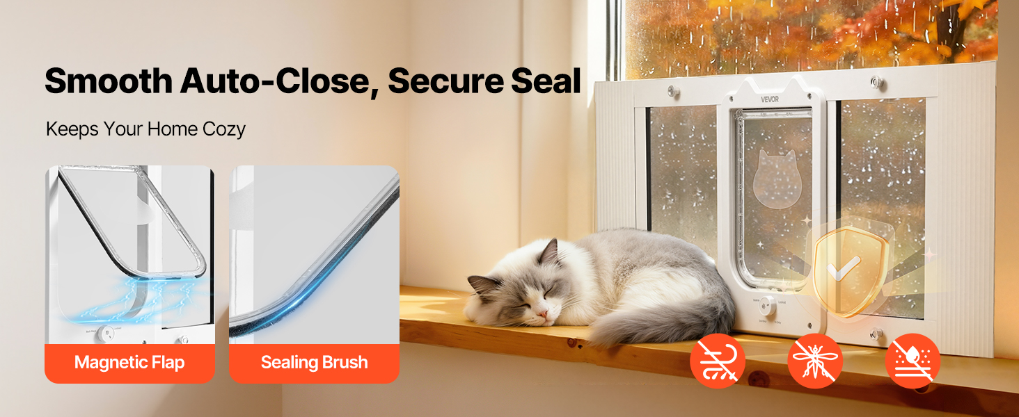 Magnetická klapka a mäkká kefová výstelka umožňujú tichý, bezproblémový pohyb. Naše okenné dvierka pre domáce zvieratá udržujú váš domov v pohodlí a čistote.
