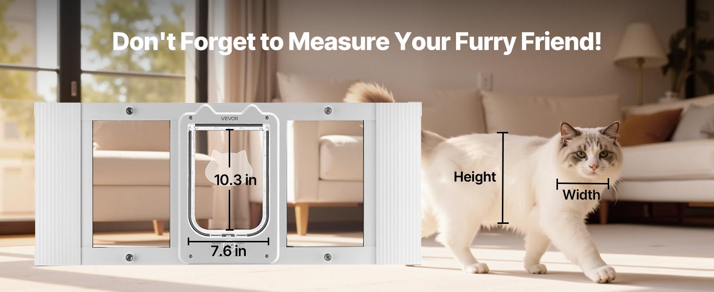 Pred zakúpením týchto dvierok pre domáce zvieratá na okno si overte správnu veľkosť, aby vaša mačka mohla zakaždým pohodlne prejsť.