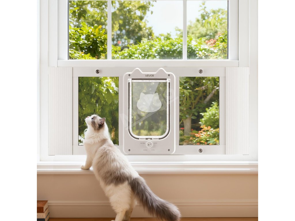Pred zakúpením týchto dvierok pre domáce zvieratá na okno si overte správnu veľkosť, aby vaša mačka mohla zakaždým pohodlne prejsť.