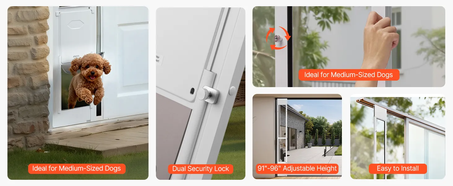 Tieto dvierka pre psov na posuvné sklenené dvere sú navrhnuté s ohľadom na pohodlie a komfort vášho domáceho miláčika a zabezpečujú bezproblémový prístup a zároveň zachovávajú harmóniu interiéru vášho domova. Pokročilá konštrukcia závesu zvyšuje stabilitu aj odolnosť, čím zabraňuje rozbitiu aj pri nízkych teplotách.