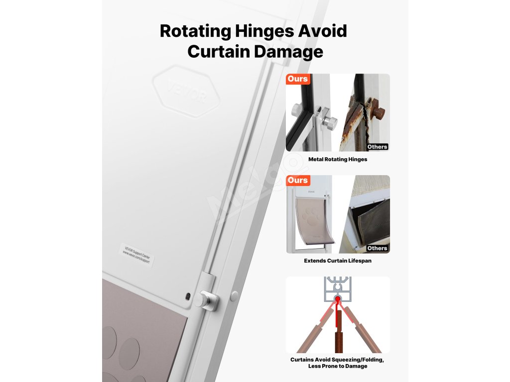 Tieto dvierka pre psov na posuvné sklenené dvere sú navrhnuté s ohľadom na pohodlie a komfort vášho domáceho miláčika a zabezpečujú bezproblémový prístup a zároveň zachovávajú harmóniu interiéru vášho domova. Pokročilá konštrukcia závesu zvyšuje stabilitu aj odolnosť, čím zabraňuje rozbitiu aj pri nízkych teplotách.