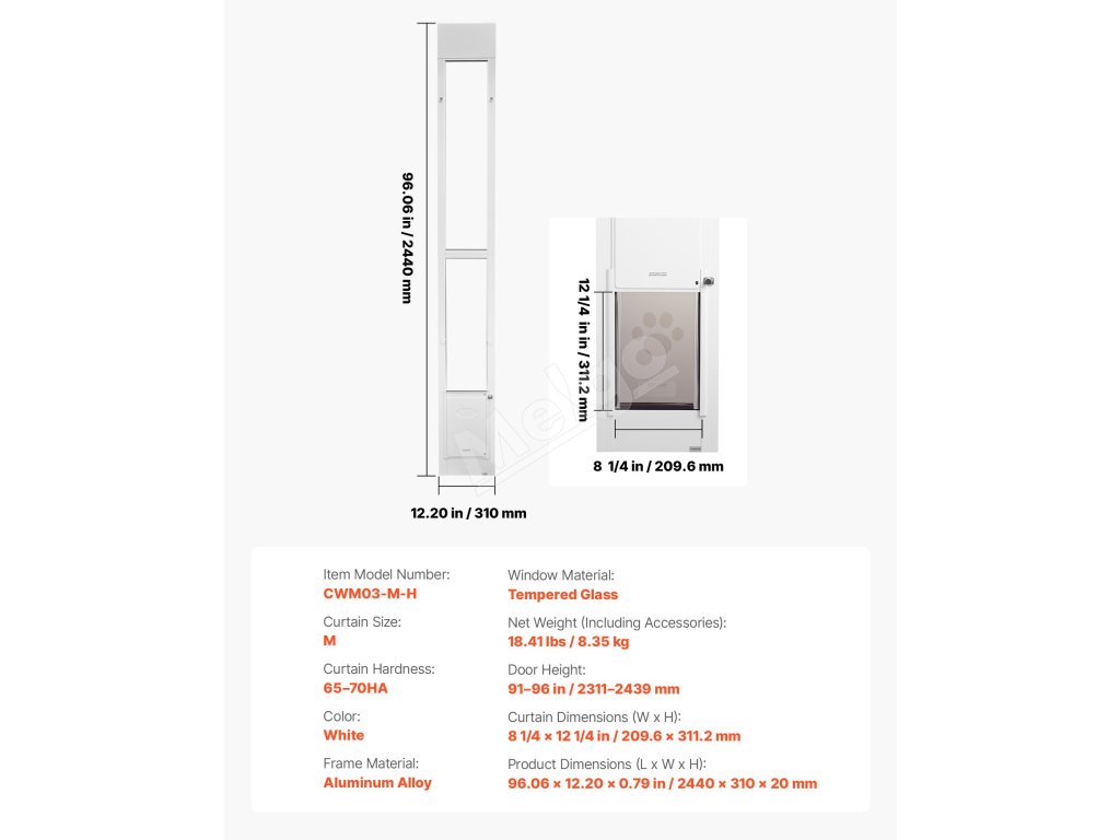 Psie dvere do posuvného skla, nastav. 2311–2439 mm, 209.6×311.2 mm
