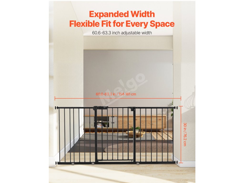 Vďaka maximálnej šírke 63,3 palca / 161 cm sa táto brána hodí do širších dverí, chodieb a vstupov do izieb. Či už ide o priestranný priechod medzi obývacou izbou a jedálňou alebo širšie schodisko vo vile, ideálne sa prispôsobí.