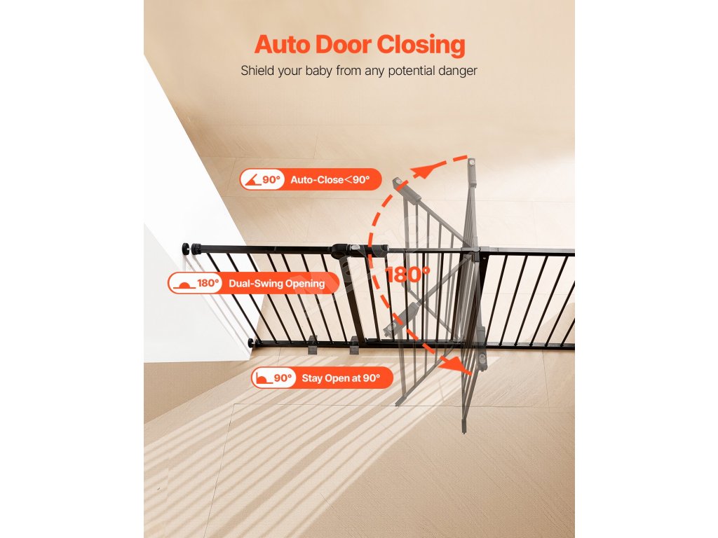 Vďaka úzkemu rozstupu tyčí 2,5" brána pre psov účinne zabraňuje tomu, aby deti prestrčili hlavu cez medzery, čím sa znižuje riziko zranenia. Zabraňuje tiež domácim zvieratám, aby sa pretlačili cez mreže, čím zabezpečuje bezpečnosť detí aj zvierat.