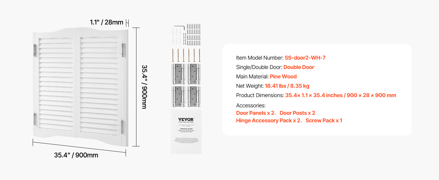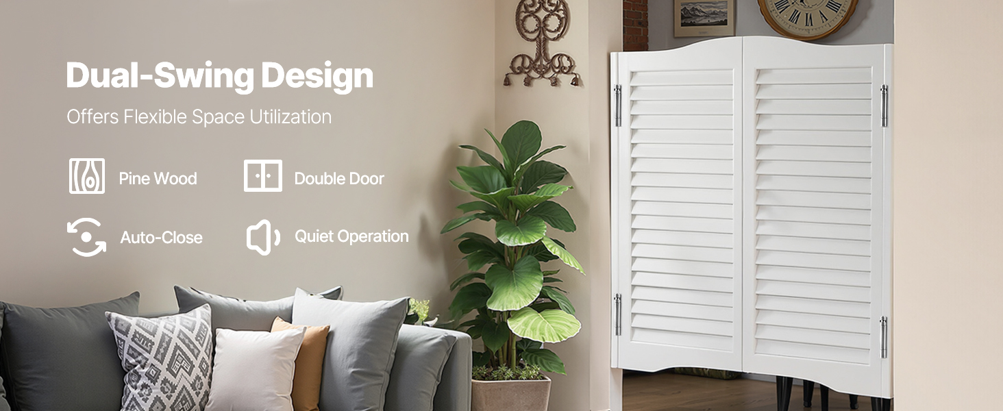 Kyvadlové kaviarenské dvere 91.4×91.4 cm, s oblúkom, borovica, biele