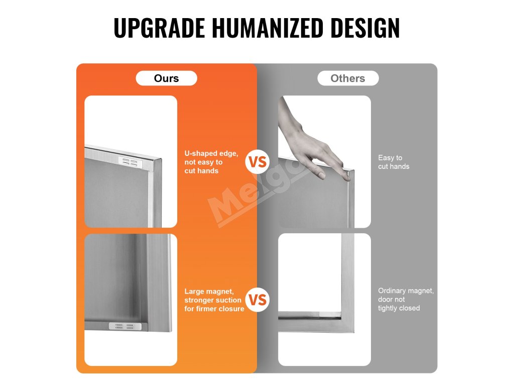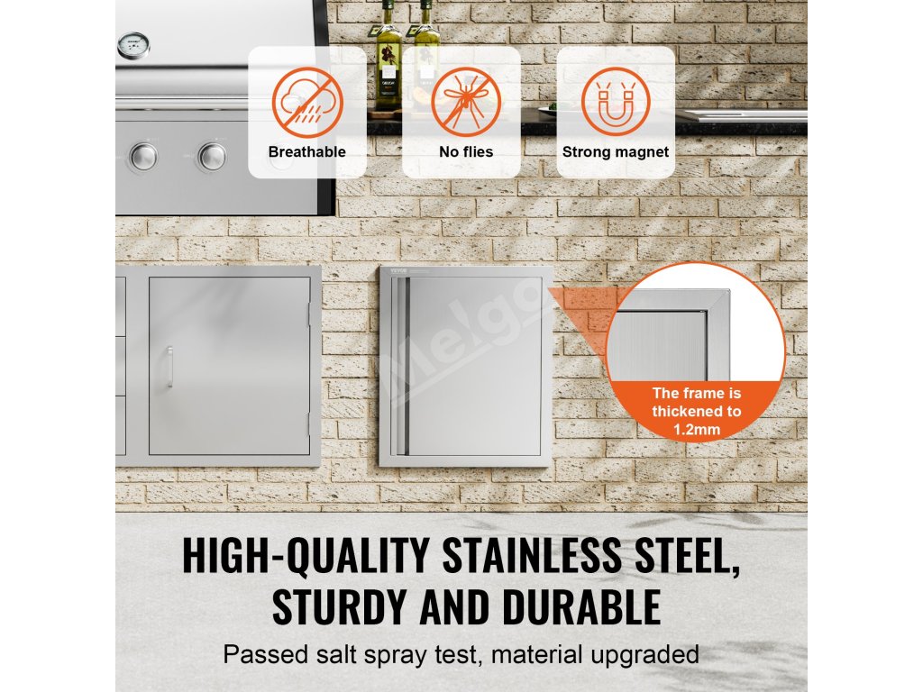 Tieto prístupové dvierka na gril sú vyrobené z robustnej konštrukcie z vysokokvalitnej nehrdzavejúcej ocele, odolné proti korózii, vode, poškriabaniu, ľahko sa čistia bez zanechania stôp alebo škvŕn. Úplne bezšvová konštrukcia, žiadne ostré rohy, čo zaisťuje bezpečnosť používateľa.