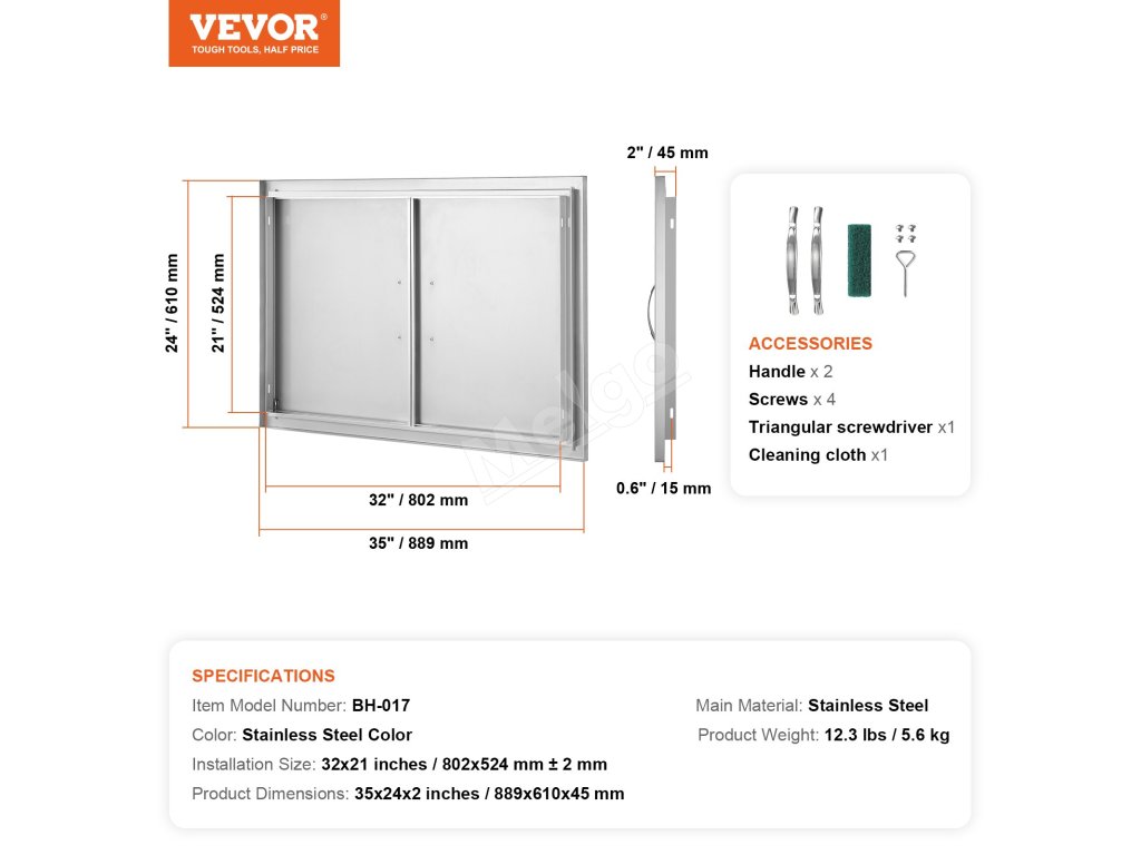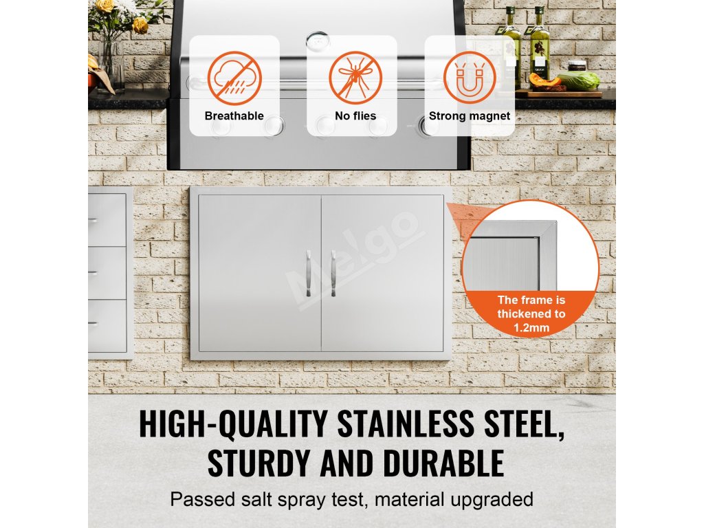 Tieto prístupové dvierka na gril sú vyrobené z robustnej konštrukcie z vysokokvalitnej nehrdzavejúcej ocele, odolné proti korózii, vode, poškriabaniu, ľahko sa čistia bez zanechania stôp alebo škvŕn. Úplne bezšvová konštrukcia, žiadne ostré rohy, čo zaisťuje bezpečnosť používateľa.