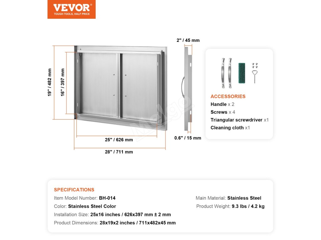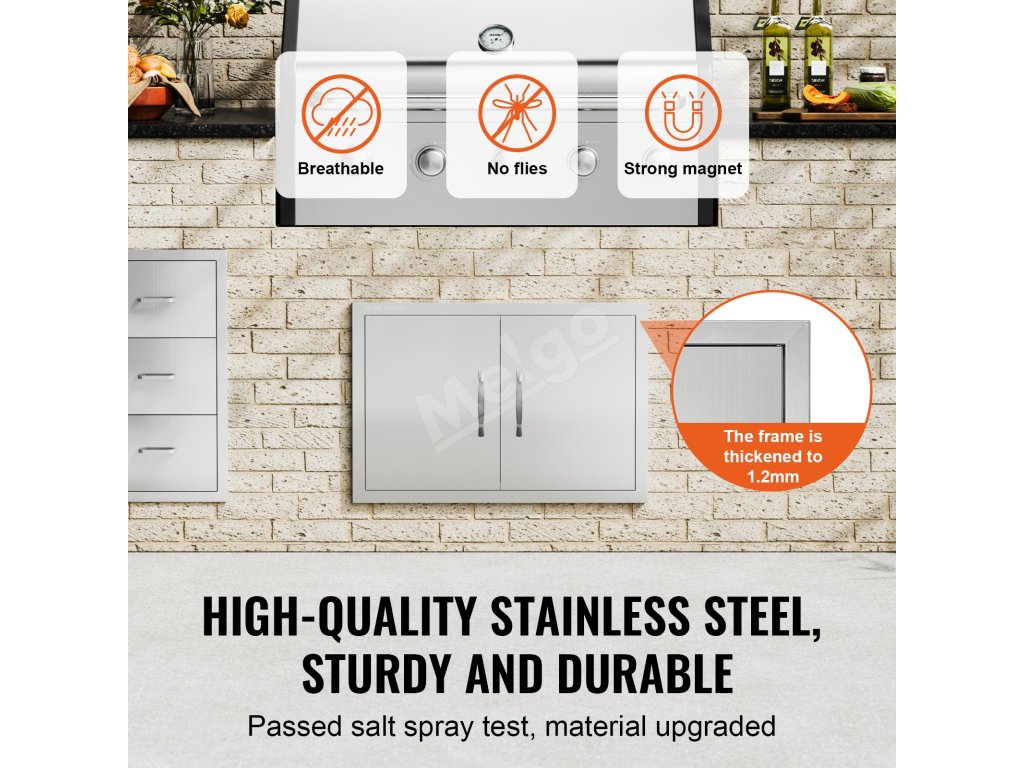 Tieto prístupové dvierka na gril sú vyrobené z robustnej konštrukcie z vysokokvalitnej nehrdzavejúcej ocele, odolné proti korózii, vode, poškriabaniu, ľahko sa čistia bez zanechania stôp alebo škvŕn. Úplne bezšvová konštrukcia, žiadne ostré rohy, čo zaisťuje bezpečnosť používateľa.