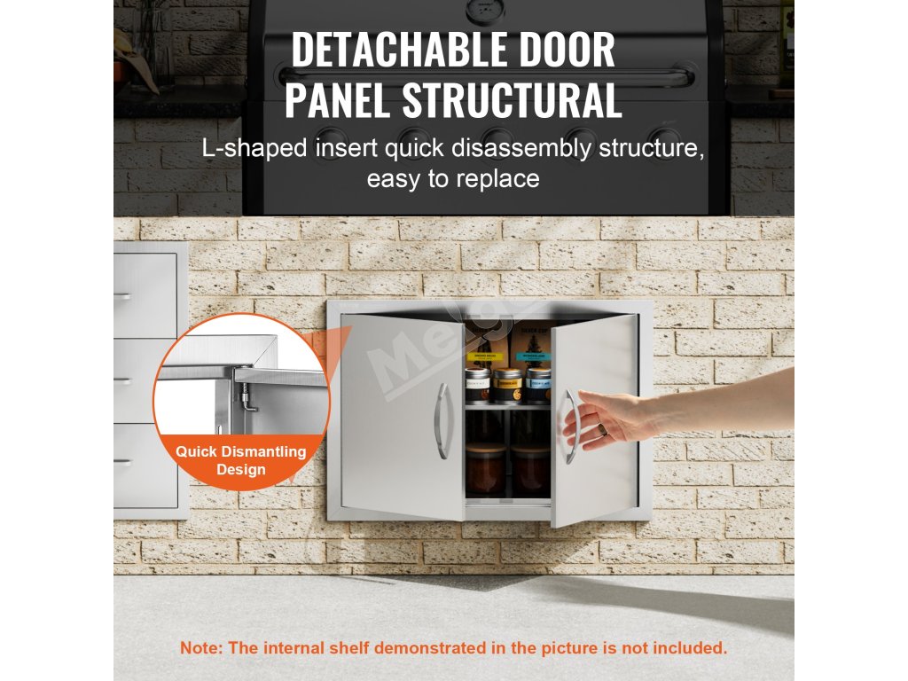 Dvierka vonkajšej kuchyne sú vybavené ergonomickou rukoväťou na jednoduché otváranie. Hrany rámu dvierok sú ohnuté a zosilnené. Odnímateľná konštrukcia dvierok umožňujúca odstránenie závesu, čím sa mení smer otvárania dvierok. Smer môžete nastaviť podľa svojich zvyklostí používania.