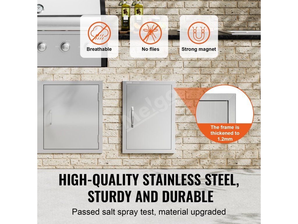 Tieto prístupové dvierka na gril sú vyrobené z robustnej konštrukcie z vysokokvalitnej nehrdzavejúcej ocele, odolné proti korózii, vode, poškriabaniu, ľahko sa čistia bez zanechania stôp alebo škvŕn. Úplne bezšvová konštrukcia, žiadne ostré rohy, čo zaisťuje bezpečnosť používateľa.