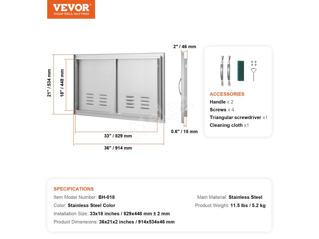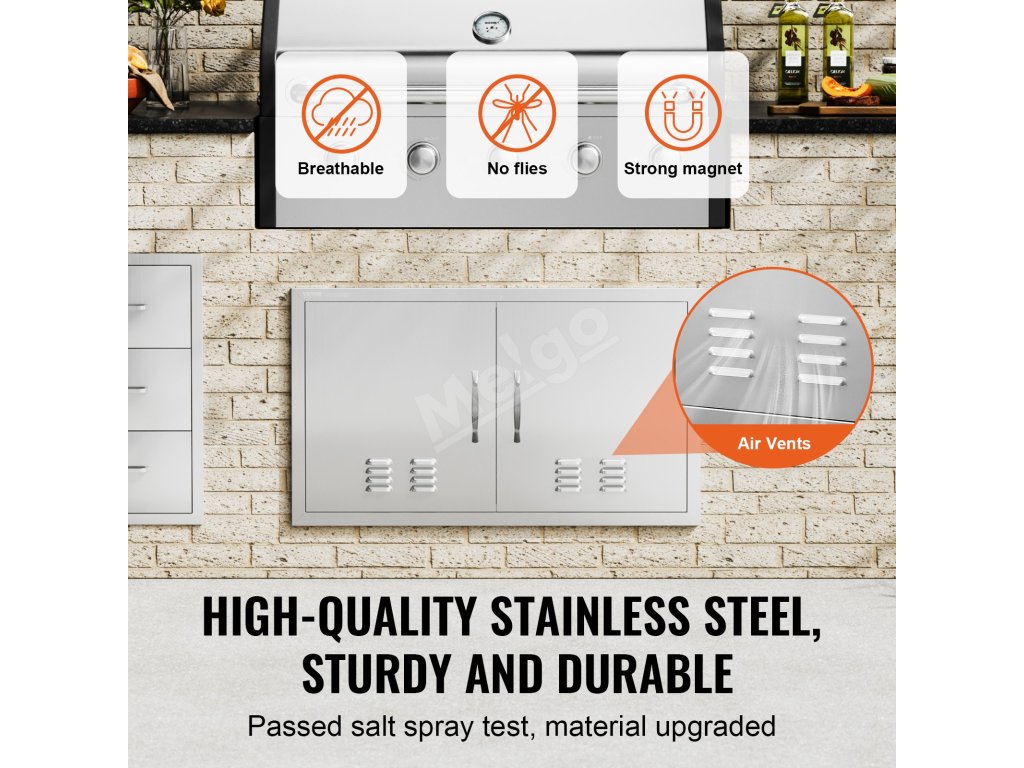 Tieto prístupové dvierka na gril sú vyrobené z robustnej konštrukcie z vysokokvalitnej nehrdzavejúcej ocele, odolné proti korózii, vode, poškriabaniu, ľahko sa čistia bez zanechania stôp alebo škvŕn. Úplne bezšvová konštrukcia, žiadne ostré rohy, čo zaisťuje bezpečnosť používateľa.