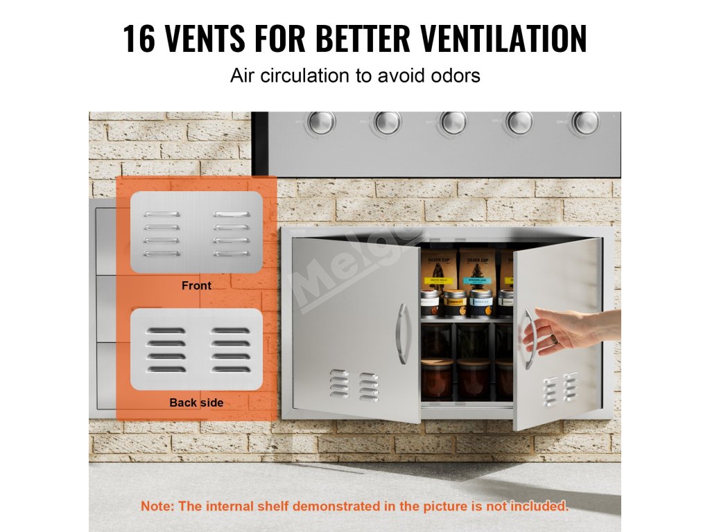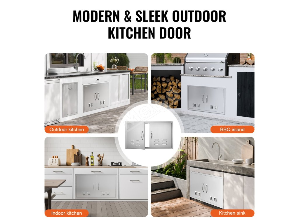 Dvierka vonkajšej kuchyne sú vybavené ergonomickou rukoväťou na jednoduché otváranie. Hrany rámu dvierok sú ohnuté a zosilnené. Odnímateľná konštrukcia dvierok umožňujúca odstránenie závesu, čím sa mení smer otvárania dvierok. Smer môžete nastaviť podľa svojich zvyklostí používania.