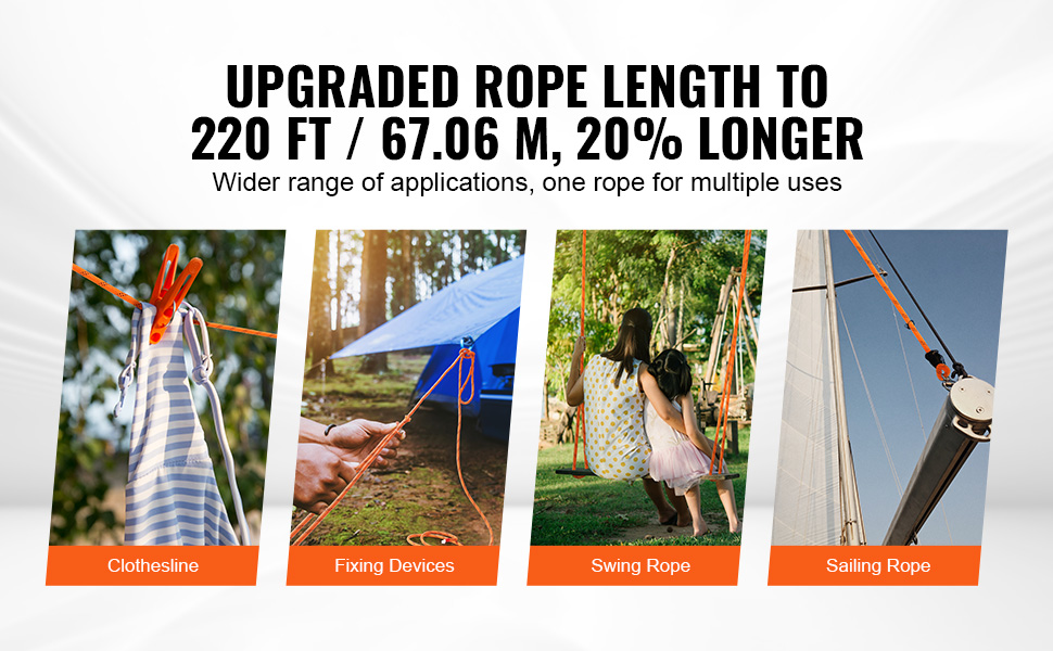 Univerzálne polyesterové lano VEVOR - silnejšie, dlhšie, pripravené na každú výzvu.