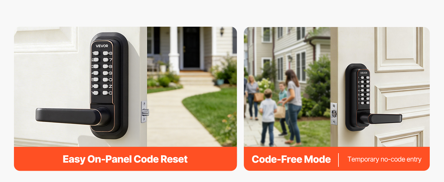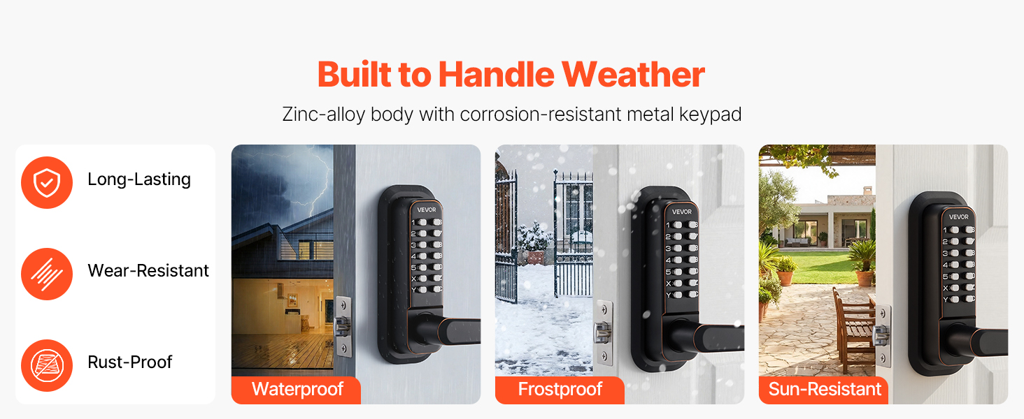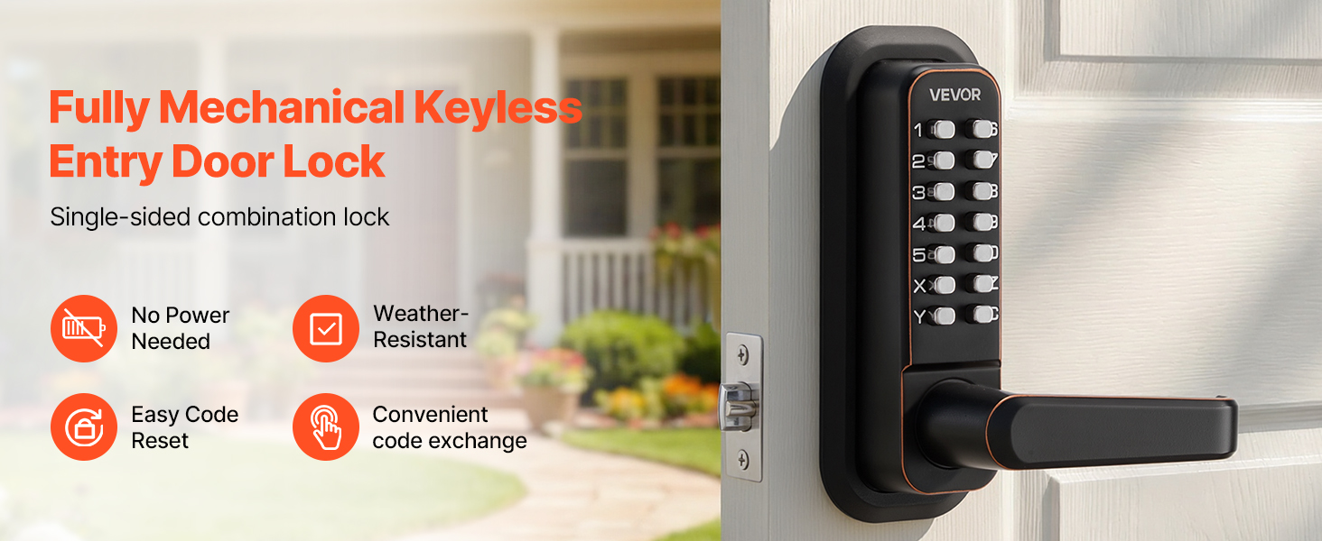 S plne mechanickou klávesnicou, celokovovou konštrukciou a viacerými praktickými režimami poskytuje mechanický bezkľúčový zámok dverí spoľahlivú každodennú bezpečnosť bez kabeláže, aplikácií alebo údržby. Je navrhnutý pre použitie v interiéri aj exteriéri a poskytuje plynulú prevádzku a dlhodobý výkon.